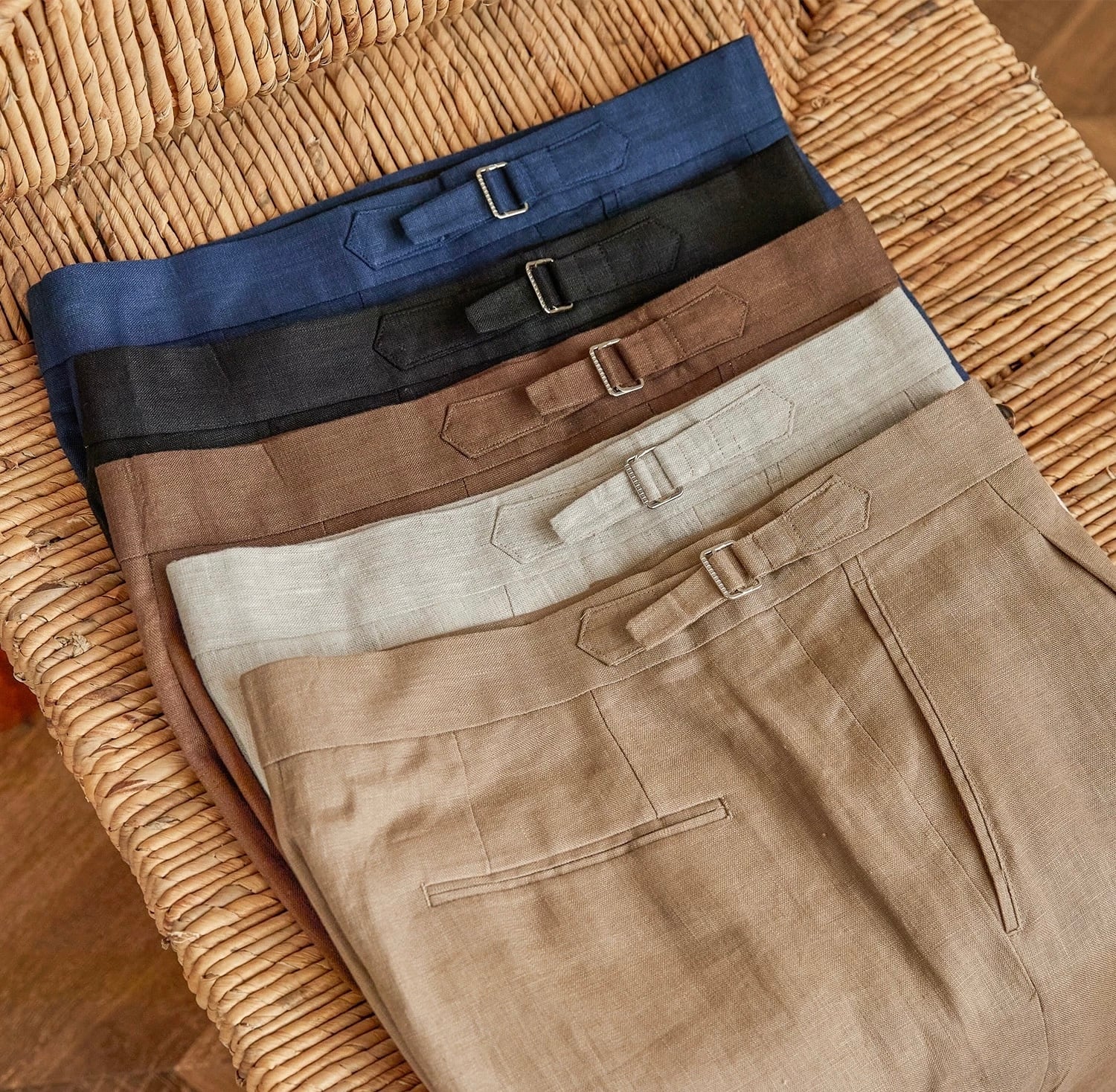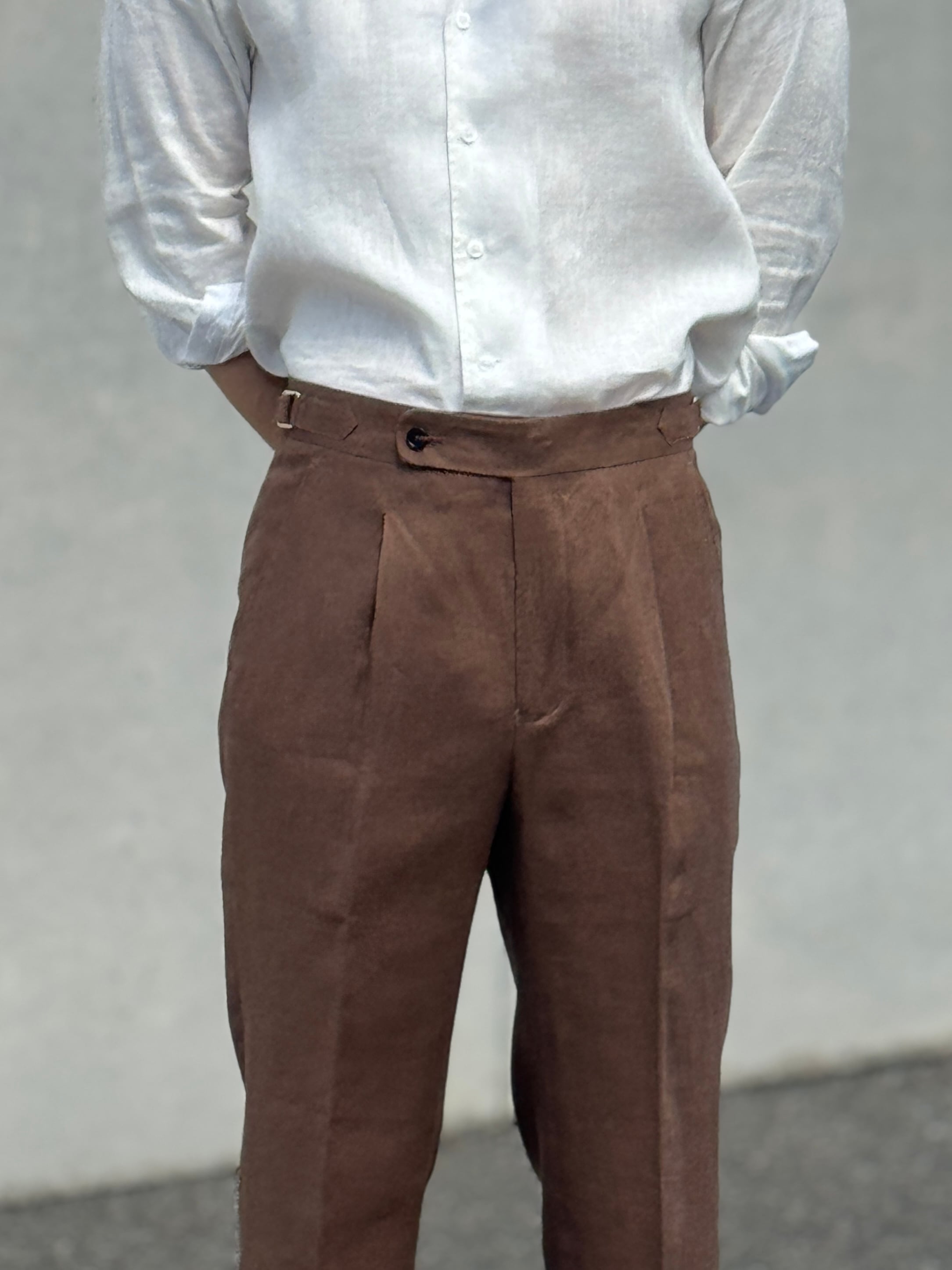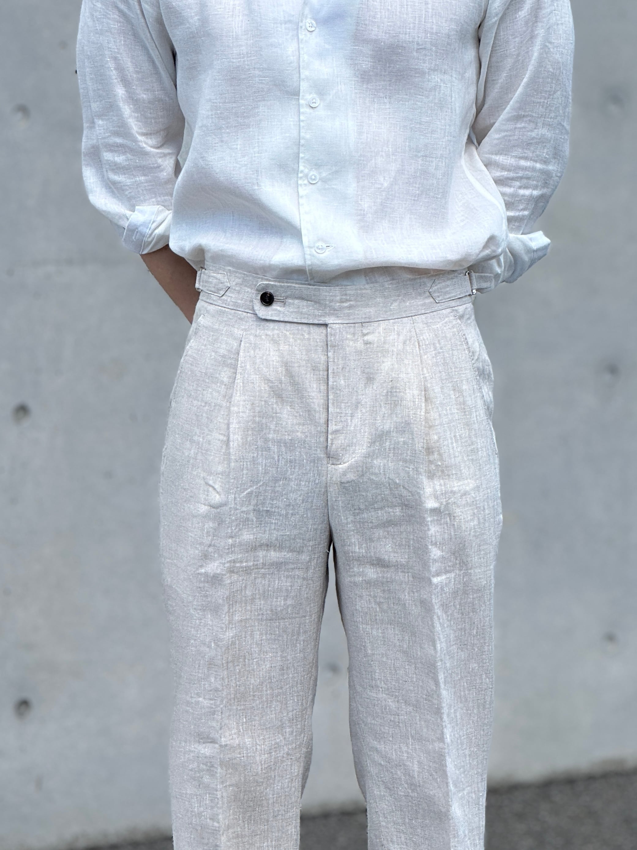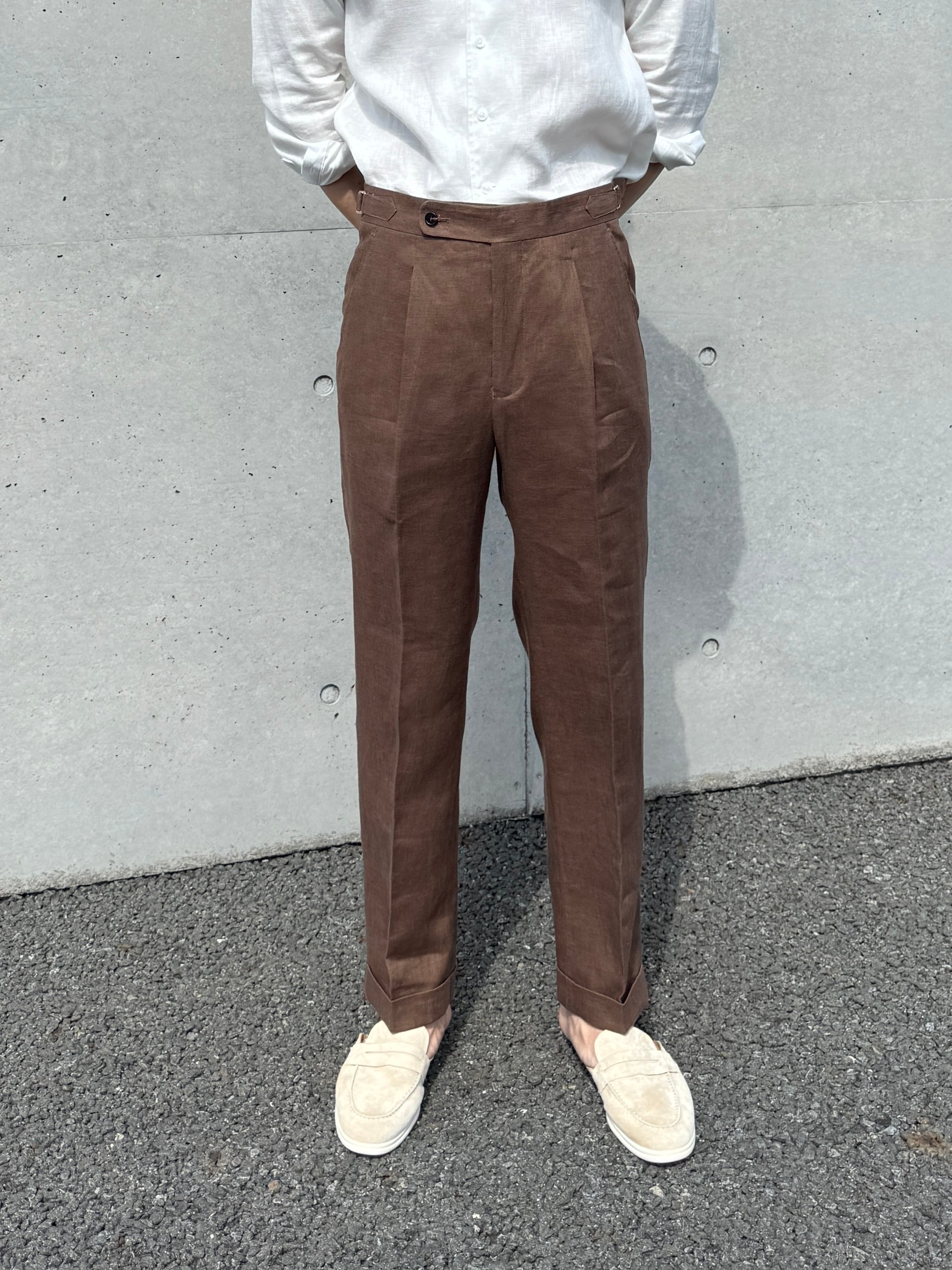 商品名【リネンベルトレススラックス【春夏用】】 モデル着用サイズ【31】 身長177cm 67kg ※素材【麻100%】 カラー【ブラック、ホワイト、ベージュ、ブラウン、アイボリー、ブルー】 ※爽やかで通気性抜群のリネン素材を使用したリネンベルトレススラックスが新登場! 春夏シーズンにぴったりな軽やかなデザインで、ベルトレス仕様により、ストレスフリーな着心地を実現しました。リネン特有の自然な風合いが、カジュアルスタイルに上品さをプラスしてくれます。毎日のコーディネートに加えるだけで、一気におしゃれ感がアップします。 このスラックスは、リラックスした雰囲気を演出しつつも、きちんと感を大切にしたデザインとなっています。ビジネスからプライベートまで幅広く使えるため、一着あれば重宝すること間違いなしです。シンプルなTシャツやシャツと合わせるだけで、ラフでありながらも洗練された印象を与えるアイテムです。 ぜひ、このリネンベルトレススラックスで春夏のスタイルを楽しんでください! 到着までの期間は約2週間程度となりますので、お楽しみにお待ちください。 モデル着用サイズ 177cm 67kg 【31】 SIZE 【29】 腰:75cm 丈:97cm 太腿:61cm 【30】 腰:78cm 丈:98 太腿:62cm 【31】 腰:81cm 丈:99 太腿:63cm 【32】 腰:84cm 丈:100cm 太腿:64cm 【33】 腰:87cm 丈:101cm 太腿:65cm 【34】 腰:90cm 丈:102cm 太腿:66cm 【36】 腰:93cm 丈:103cm 太腿:66cm ■ATTENTION 写真と実際の商品とは色合いなど多少異なる場合がございます。 画像はイメージとなっております。 商品到着まで約2週間程度かかります。 納期や配送状況により発送日が前後する場合がございます。 お客様都合での返品・交換は受け付けておりません。 寸法や色の差は多少ございます。