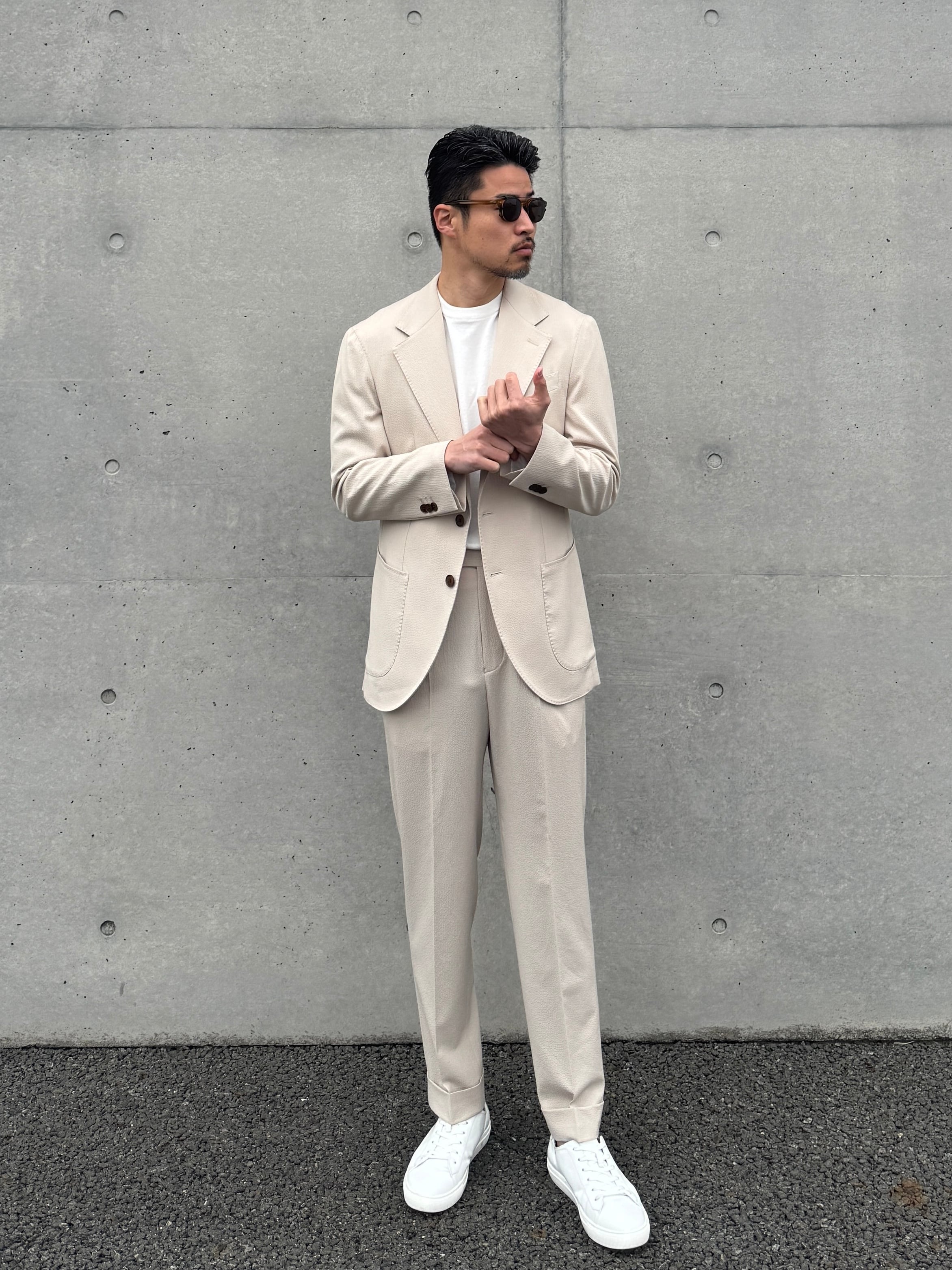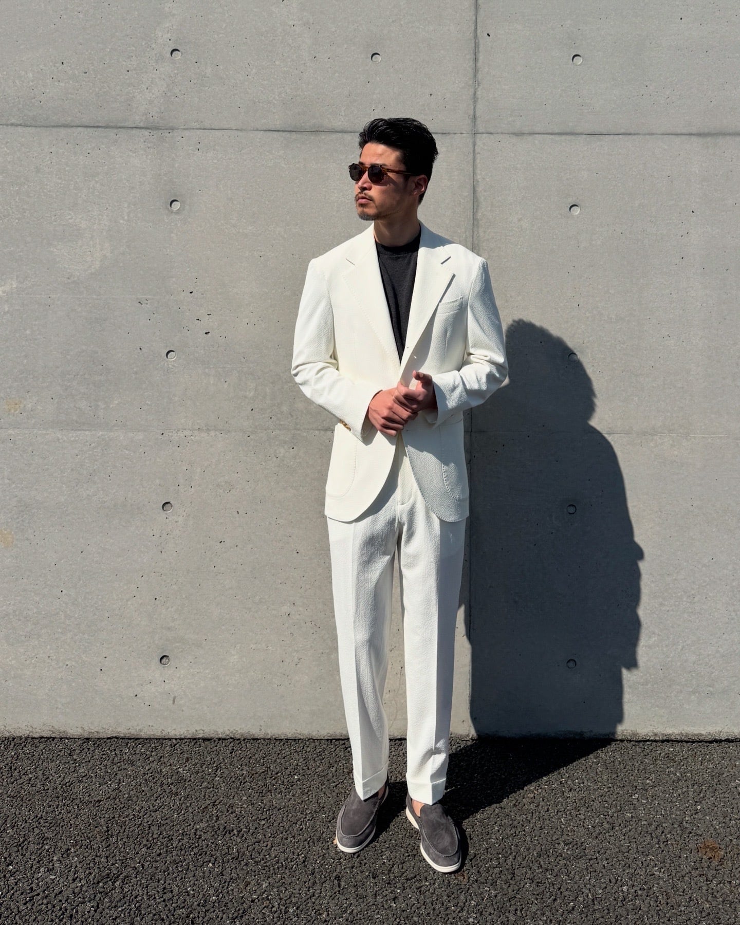 ぜひ、このシアサッカーセットアップで快適な春夏のスタイルを楽しんでください!到着までの期間は約2週間となりますので、お楽しみにお待ちください。