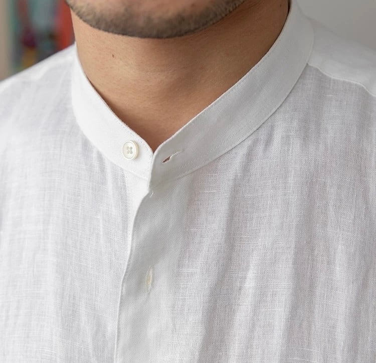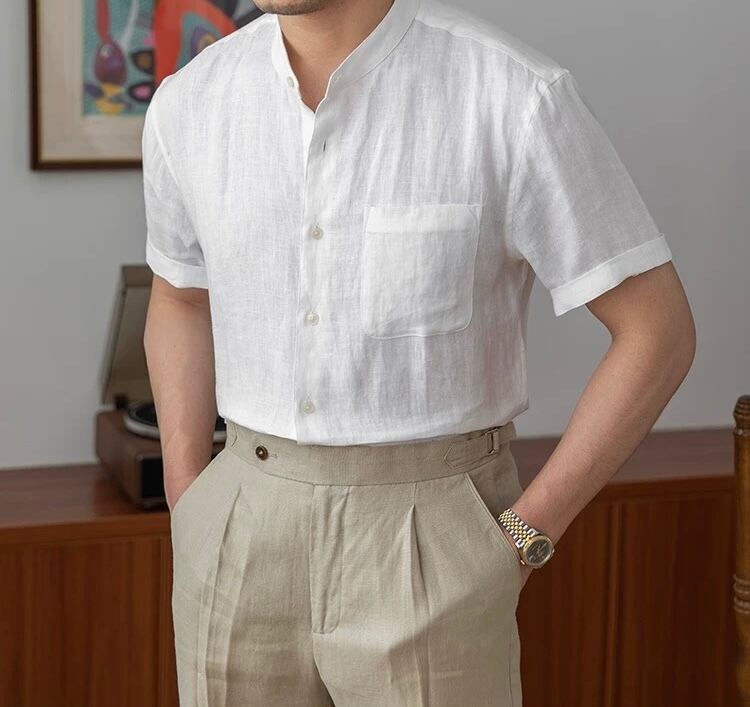 ノーカラーリネンシャツ【半袖】
