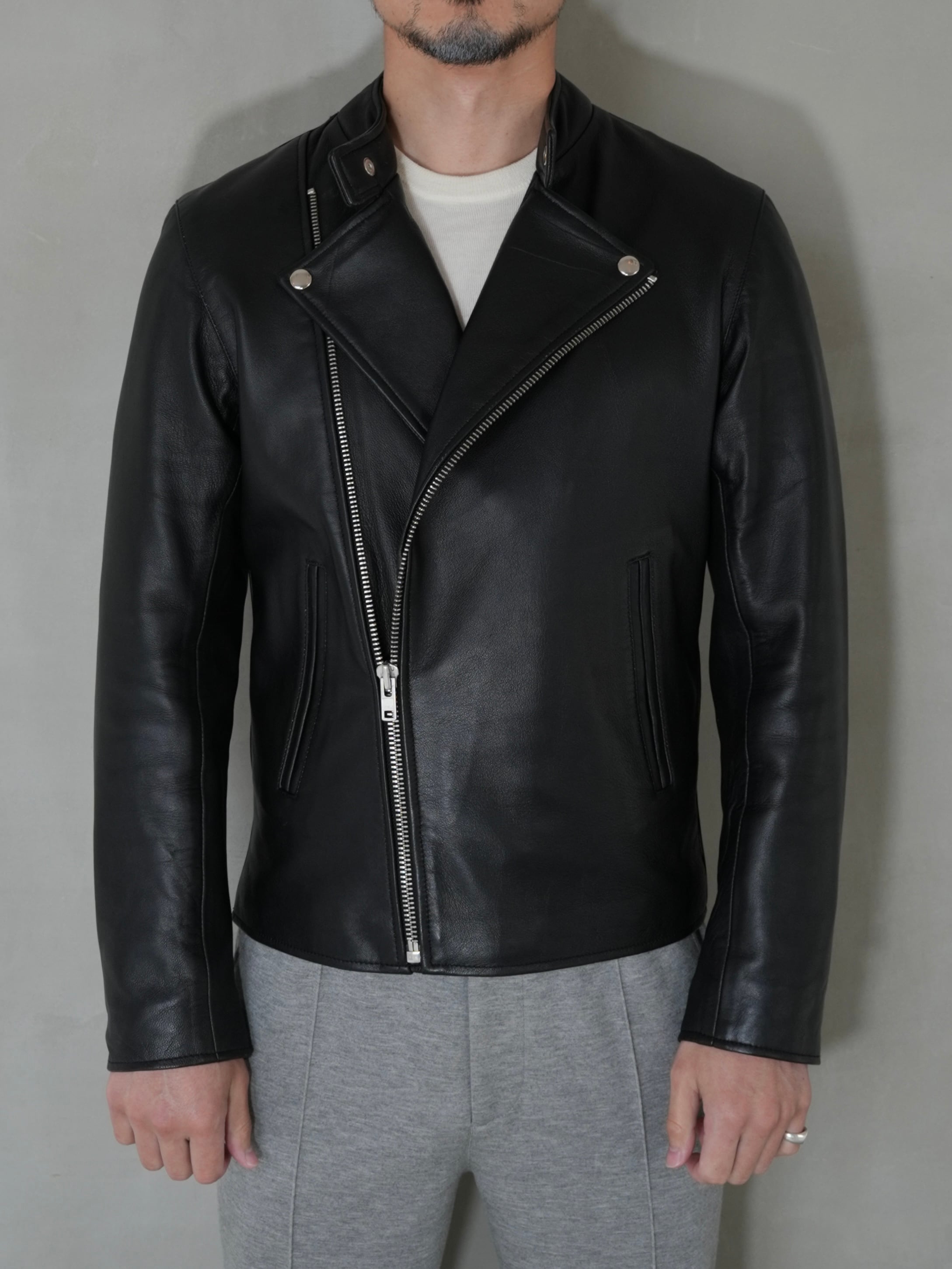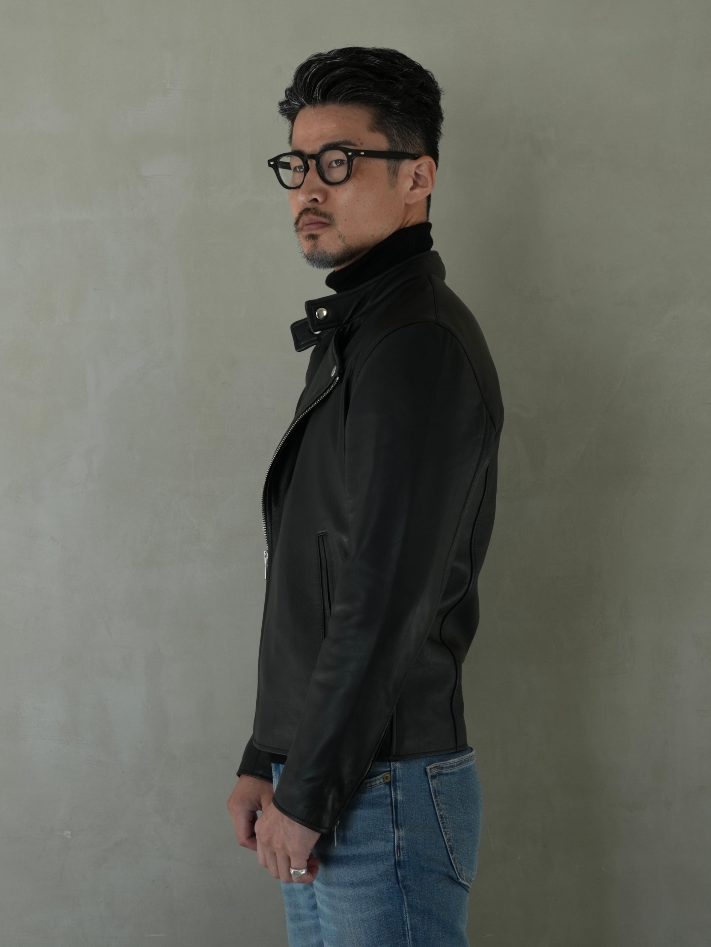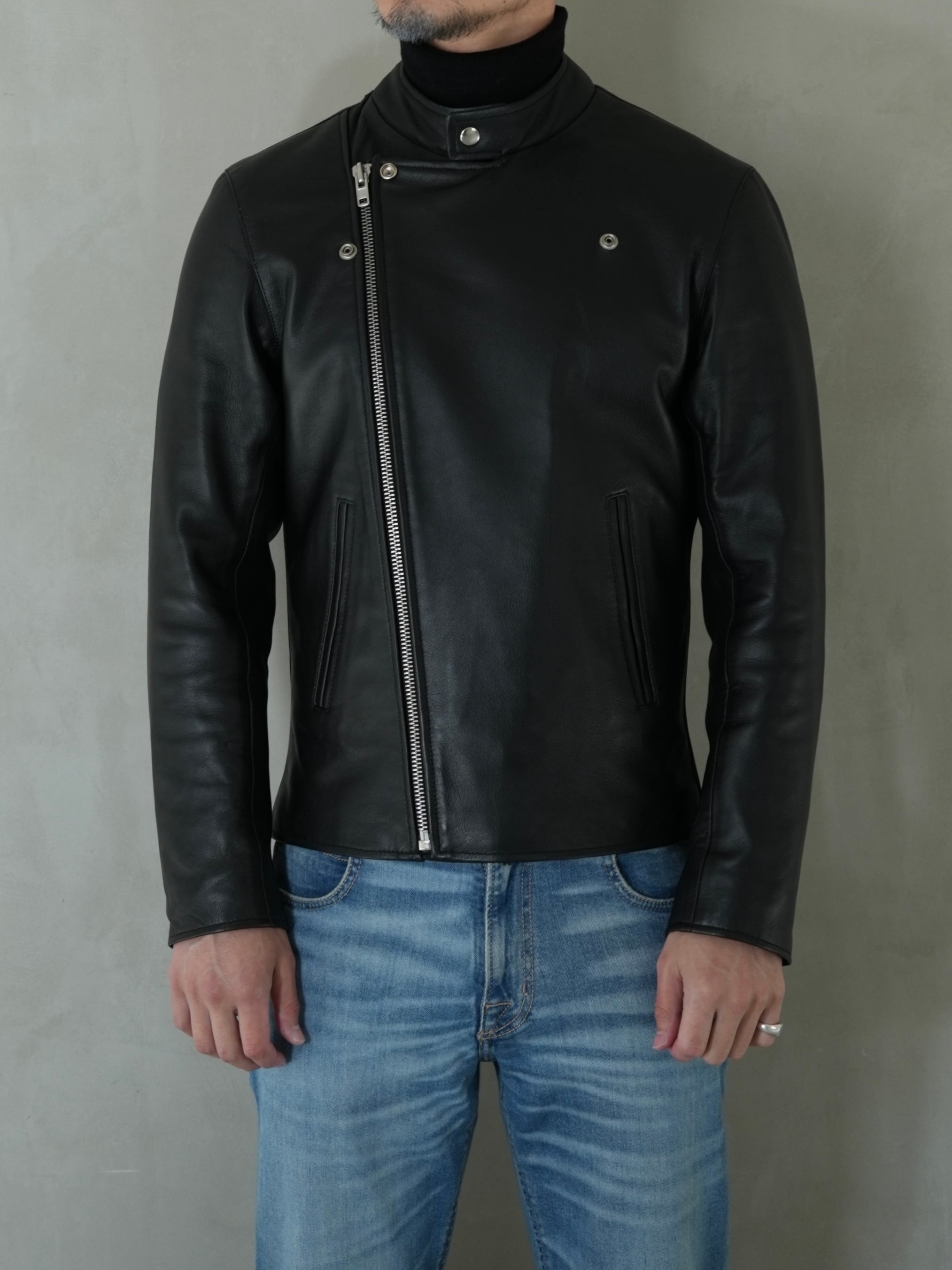 市販ではあまりお目にかかれないこの【セミダブルライダース】は、シングルとダブルを巧みに組み合わせたシンプルで洗練されたデザインが魅力です。