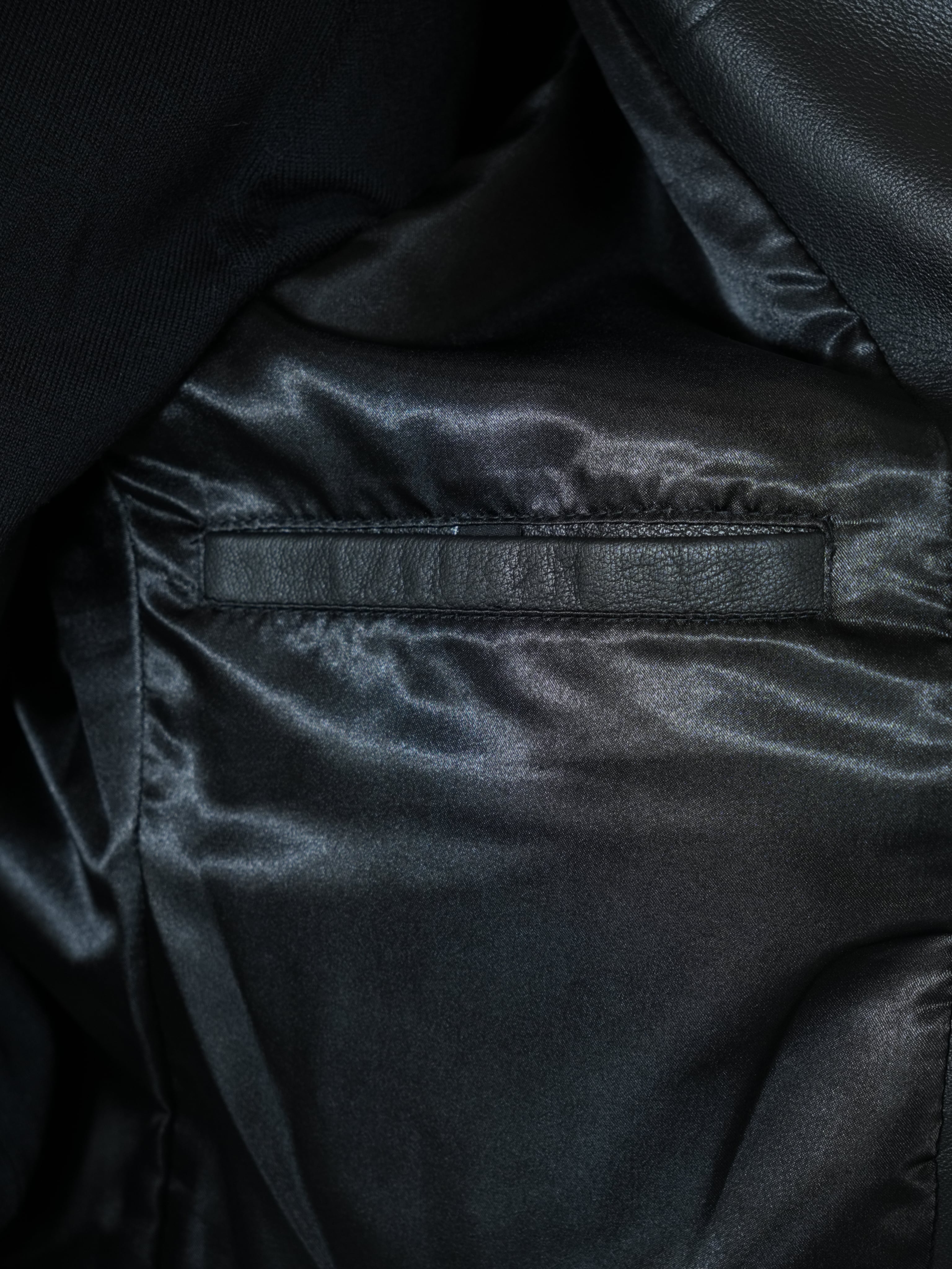 写真の通り首周りはノーカラーになっておりシングルライダースのデザインをと入れています。