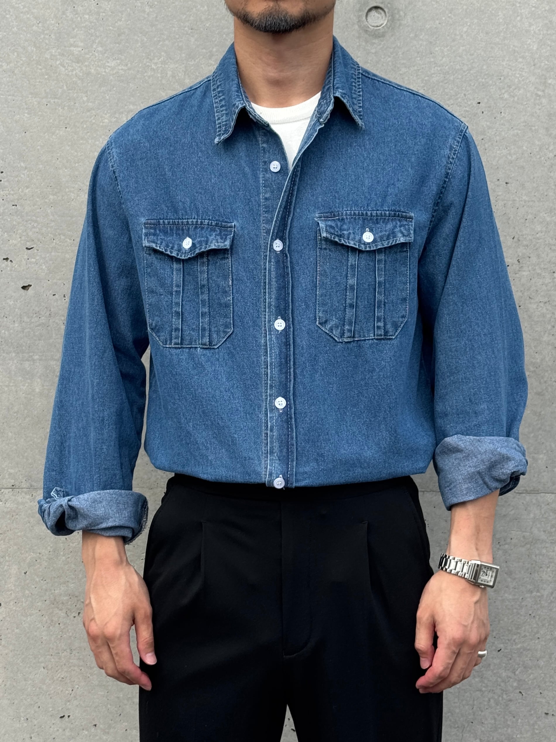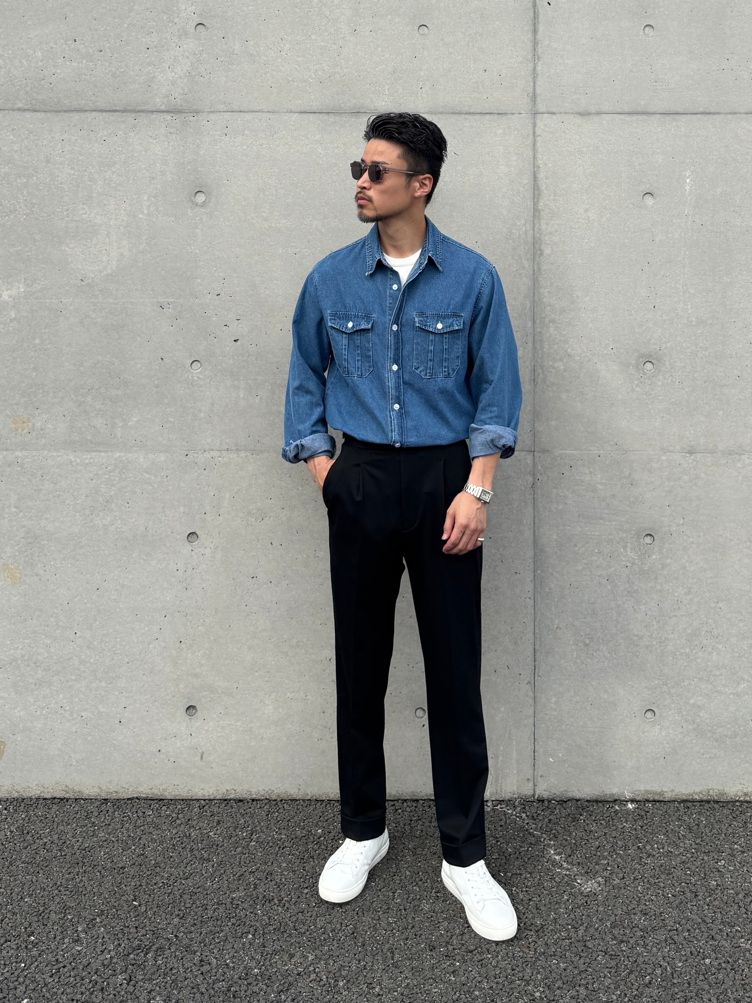 着るほどに味わい深くなる風合いが魅力で、デニムシャツとしてはもちろん、軽いジャケットとしてもお使いいただけます。シンプルなTシャツやニットとの組み合わせはもちろん、スラックスやワイドパンツとも相性が良くタックイン Styleもでき、様々なシーンで活用可能です。このデニムシャツジャケットを身に纏い、あなたのスタイルを楽しんでください!商品到着までの期間は約2週間となりますので、素敵なアイテムが届くのをお楽しみに。