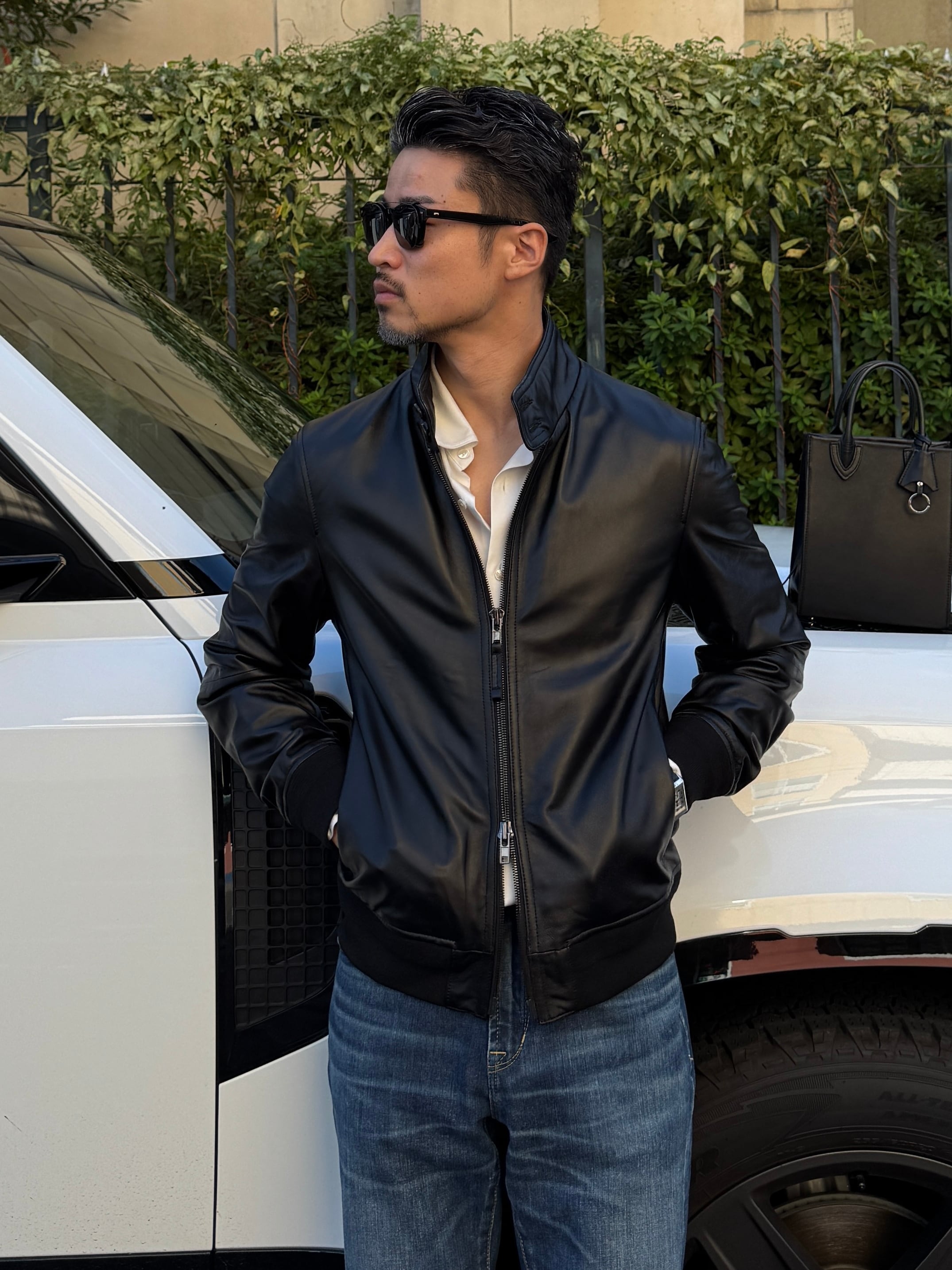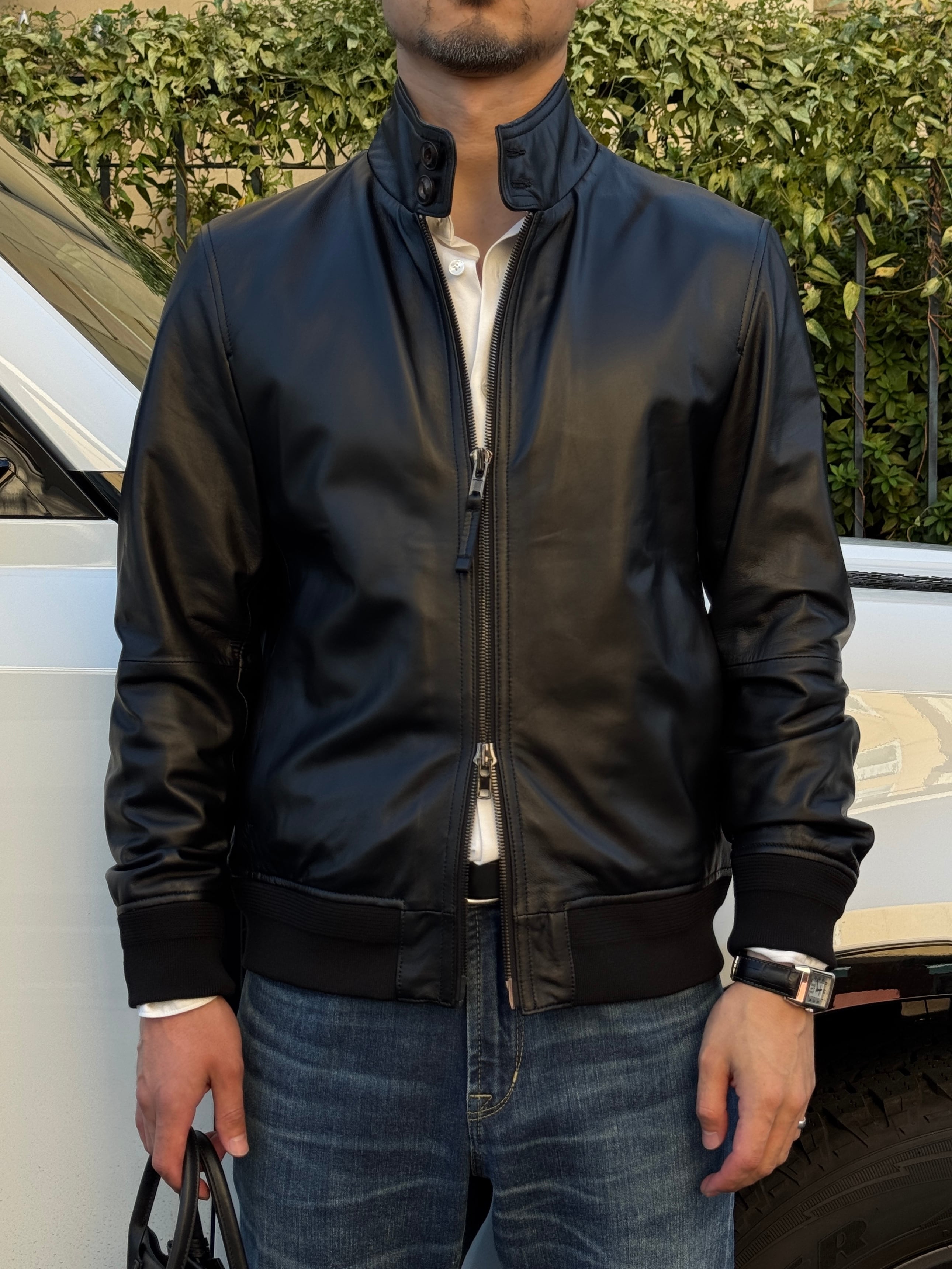このライダースジャケットは、スタンドカラーのデザインが特徴で、クールでありながらも洗練された印象を与えます。本革を使用しているため、軽くて柔らかく、抜群の着心地を実現しています。シンプルでありながらも存在感のある一品は、普段使いから特別なシーンまで幅広く活躍すること間違いありません。