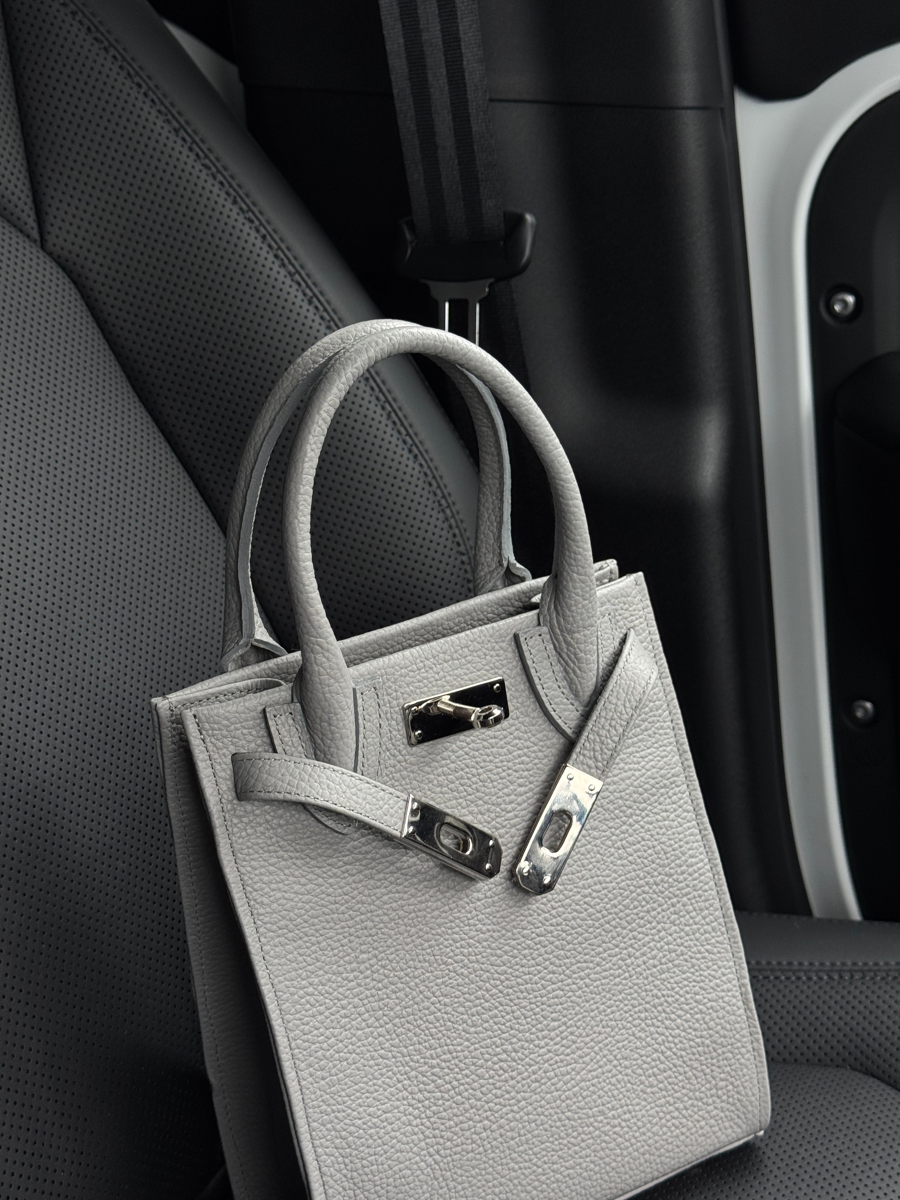 商品名【ベルト付き【ミニトートバッグ】D-collection 素材【シボ牛革100%】 着用シーズン【オールシーズン】 ※新作のベルト付きミニトートバッグが登場しました! カラー【ブラック、グレー】 生産国【日本】 レザー【姫路レザー】 このトートバッグは、デザイン性と便利さを兼ね備えたアイテムで、日常使いからお出かけまで幅広く活躍します。新しくアップデートされた仕様は、使い勝手の向上を実現しました。 ベルト付きのデザインは上品に見え高級があります。 シンプルでありながら洗練された印象を与えるこのミニトートバッグは、どんなコーディネートにもぴったりです。おしゃれなアクセントとしてぜひ取り入れてみてください! ■ATTENTION 写真と実際の商品とは色合いなど多少異なる場合がございます。 画像はイメージとなっております。 商品到着まで約3日程度かかります。 納期や配送状況により発送日が前後する場合がございます。 お客様都合での返品・交換は受け付けておりません。 寸法や色の差は多少ございますのでご了承ください。