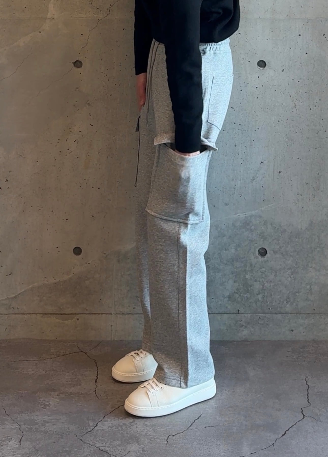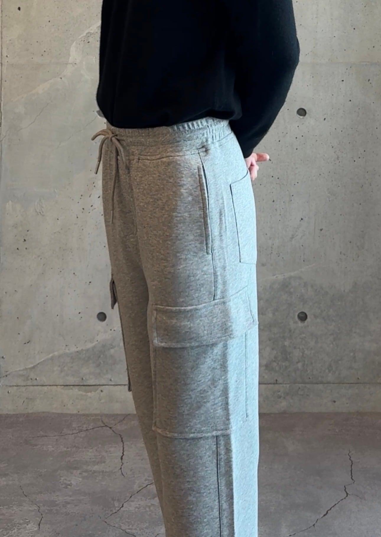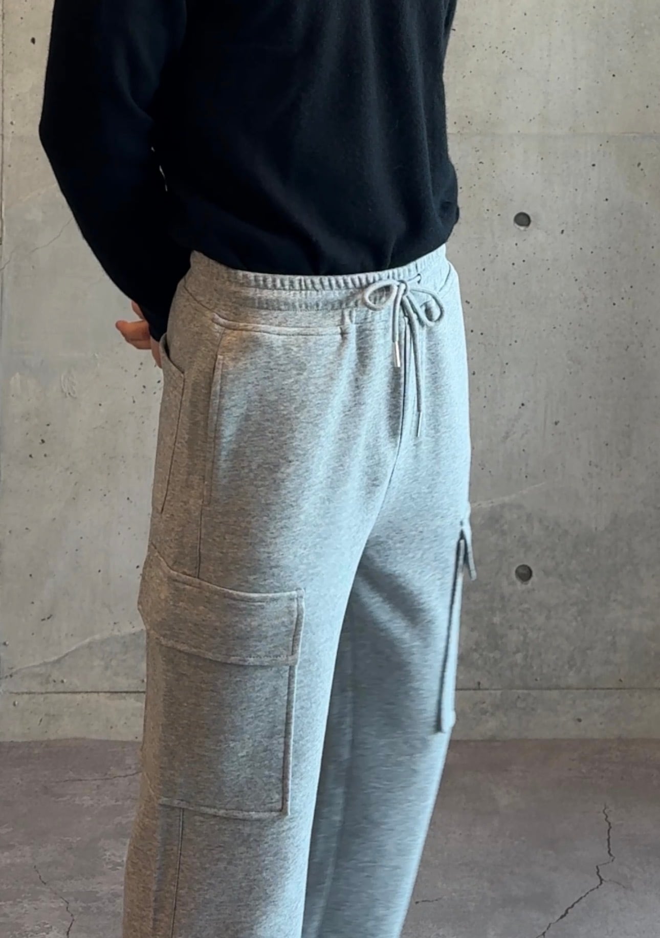 このパンツは、快適なスウェット素材を使用しており、リラックスした履き心地とトレンド感を兼ね備えた一着です。カーゴポケットが施されているデザインは、カジュアルな印象を与えつつ、機能性も充実しています。