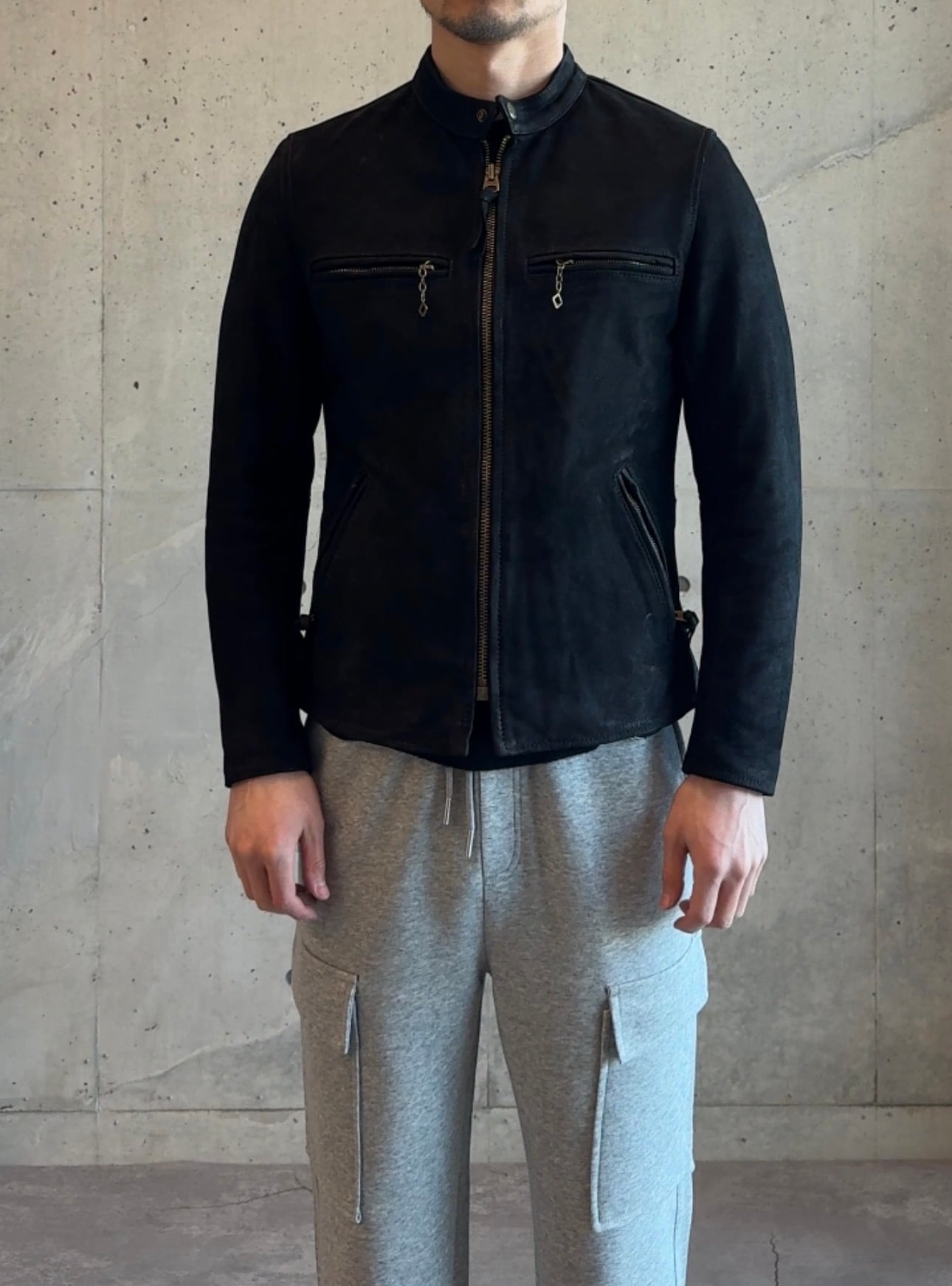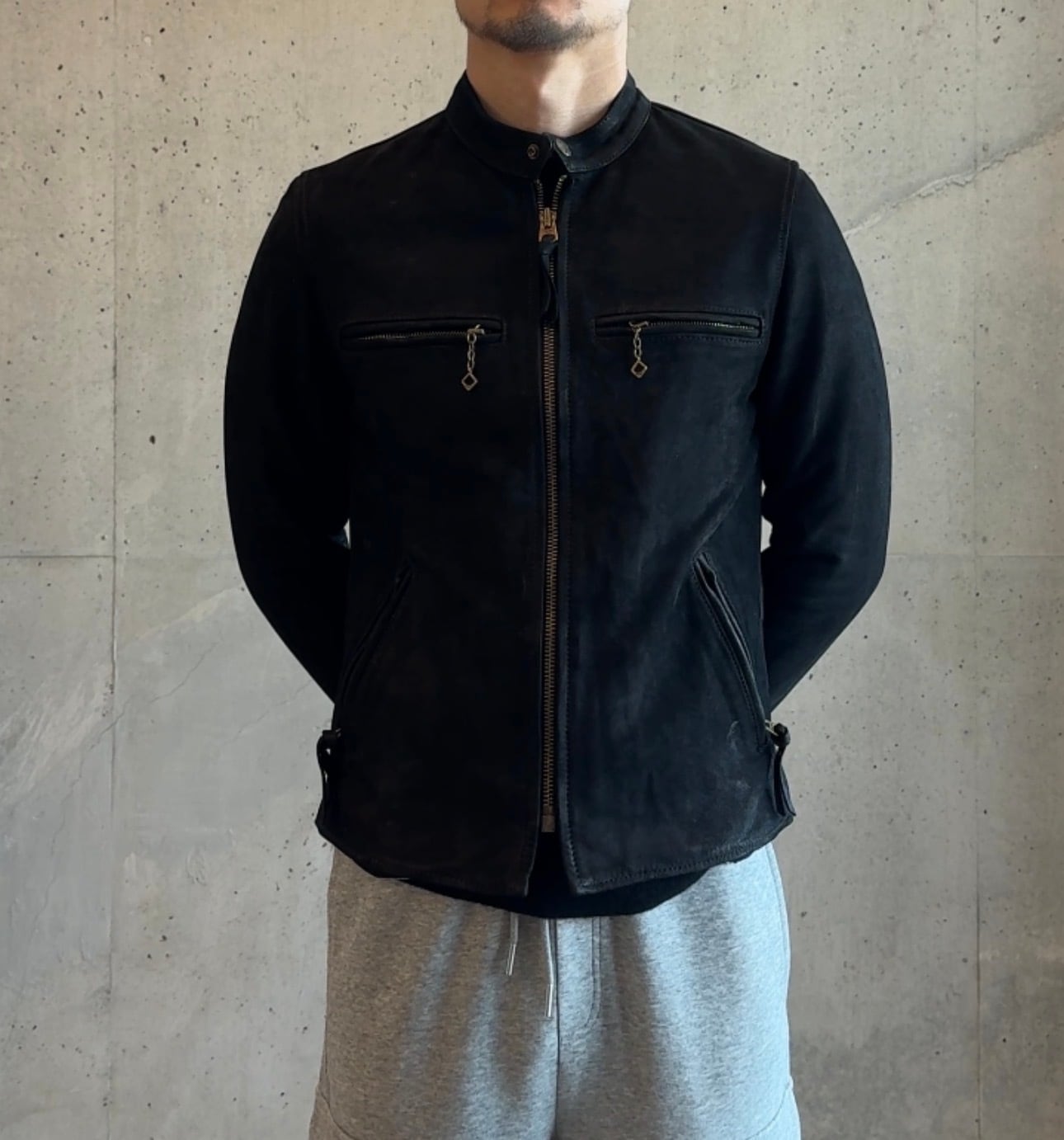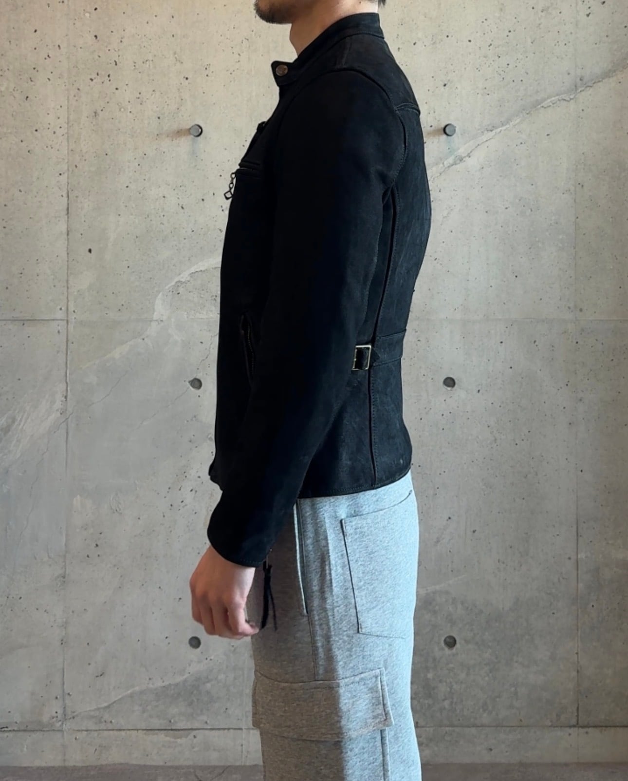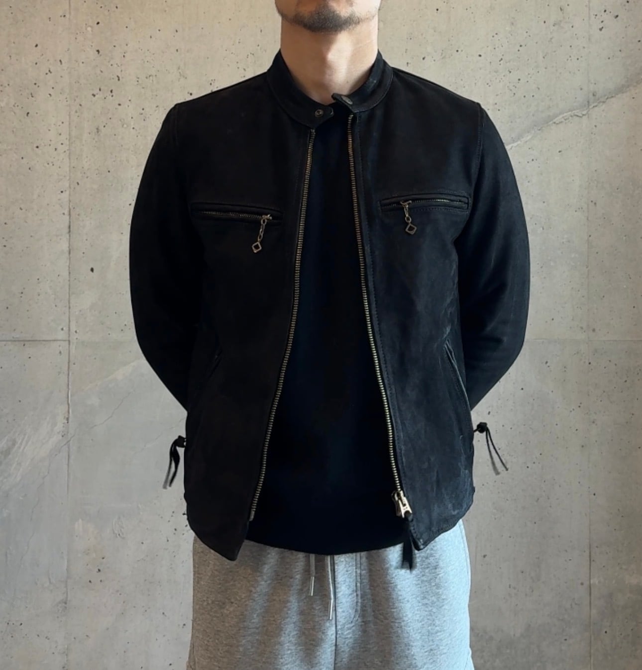 シングルライダースは、カジュアルからフォーマルまで幅広く活躍するアイテムです。軽やかに羽織るだけで、こなれ感が生まれ、日常のコーディネートがさらに引き立つこと間違いなしです。このスエードシングルライダースを取り入れて、スタイリッシュな着こなしを楽しんでみてください!