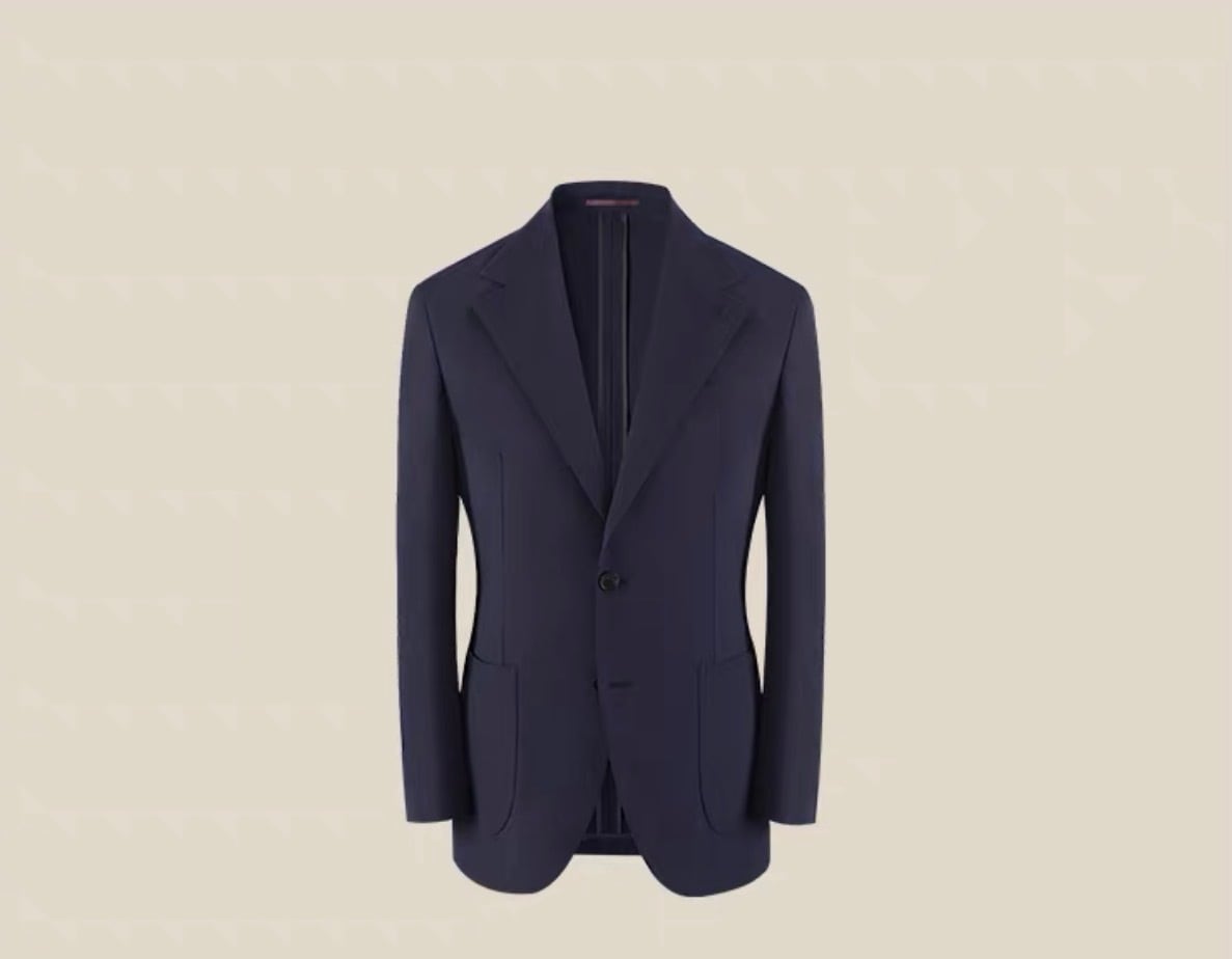 このジャケットは、ストレッチ性に優れたシャカシャカ素材を使用しており、軽やかな着心地と動きやすさが魅力です。ダブル仕立てのデザインが特徴で、カジュアルからフォーマルなシーンまで幅広く活躍します。