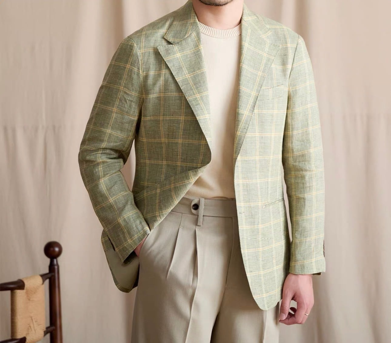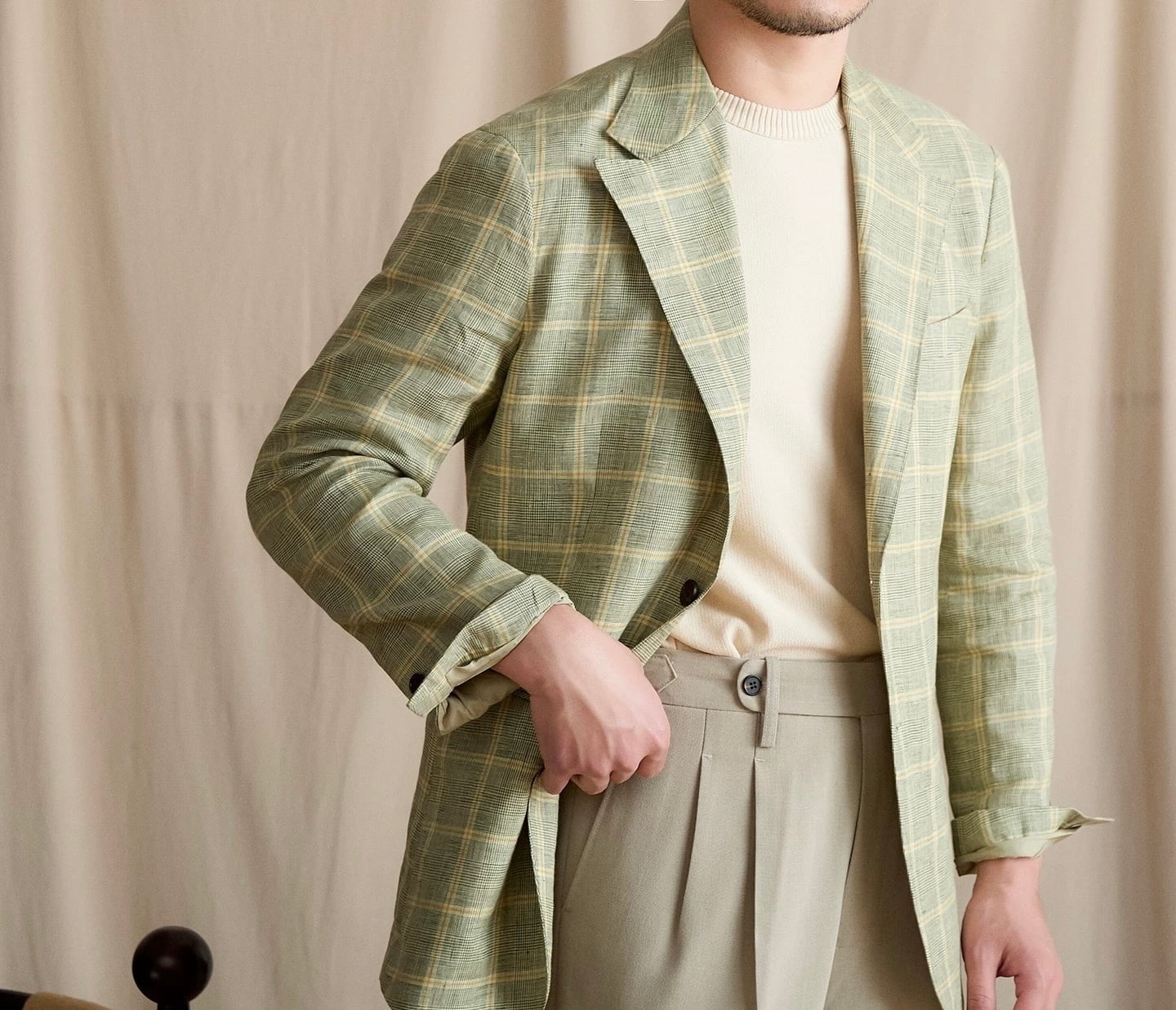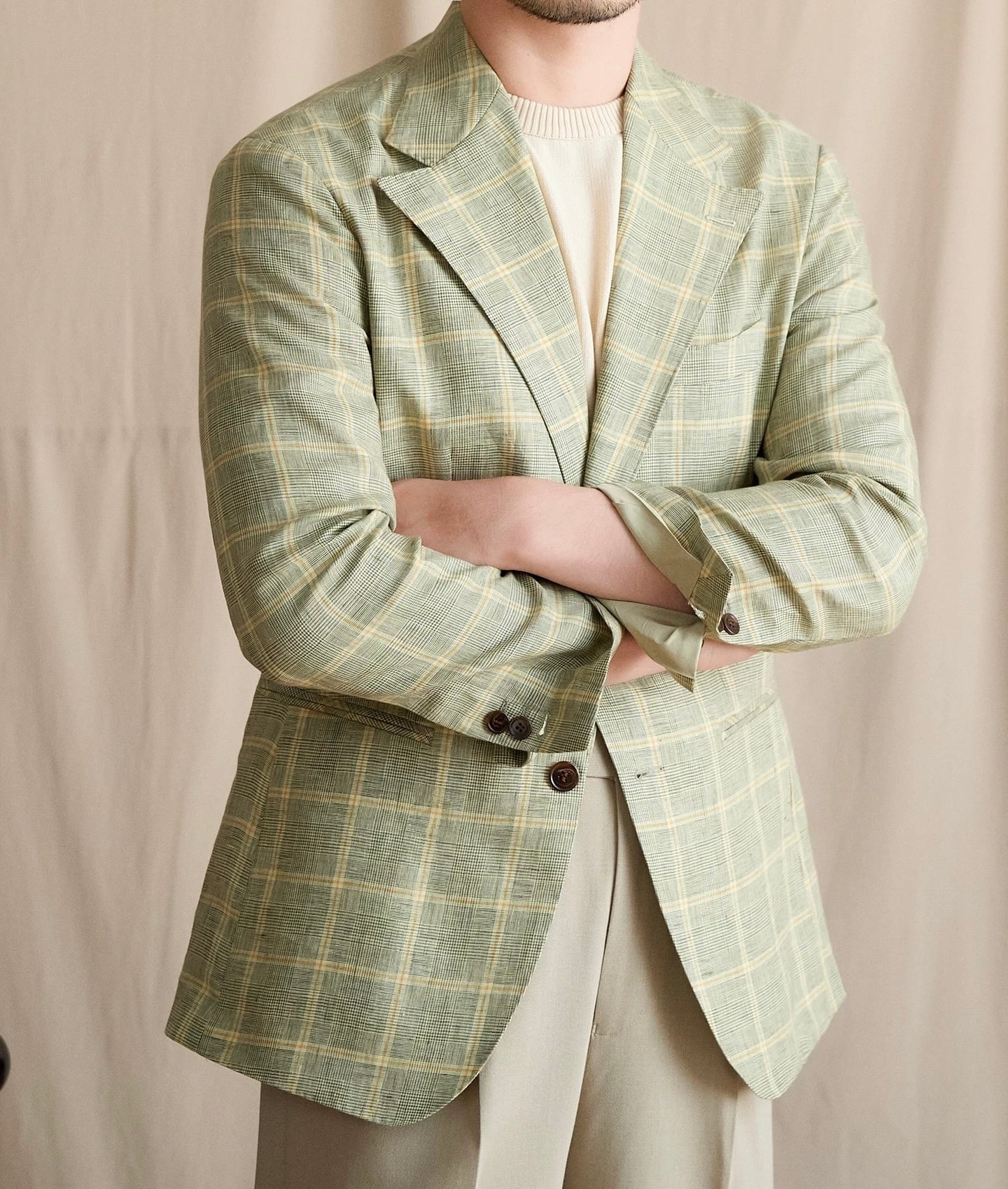 ※新作のチェックのリネンアンコンジャケットが登場しました!