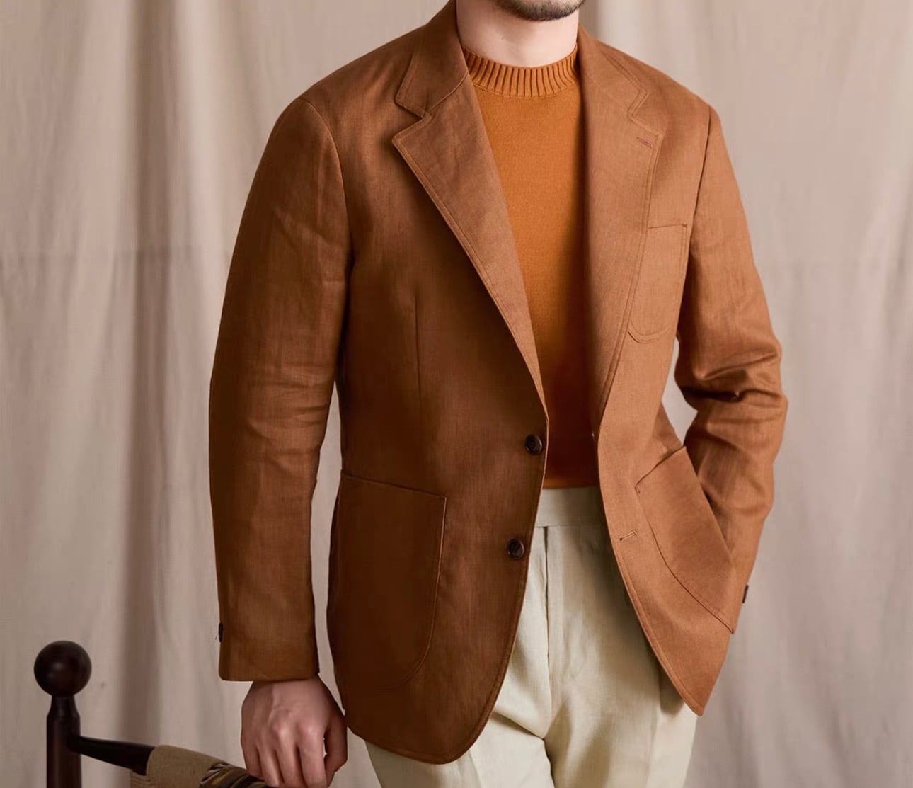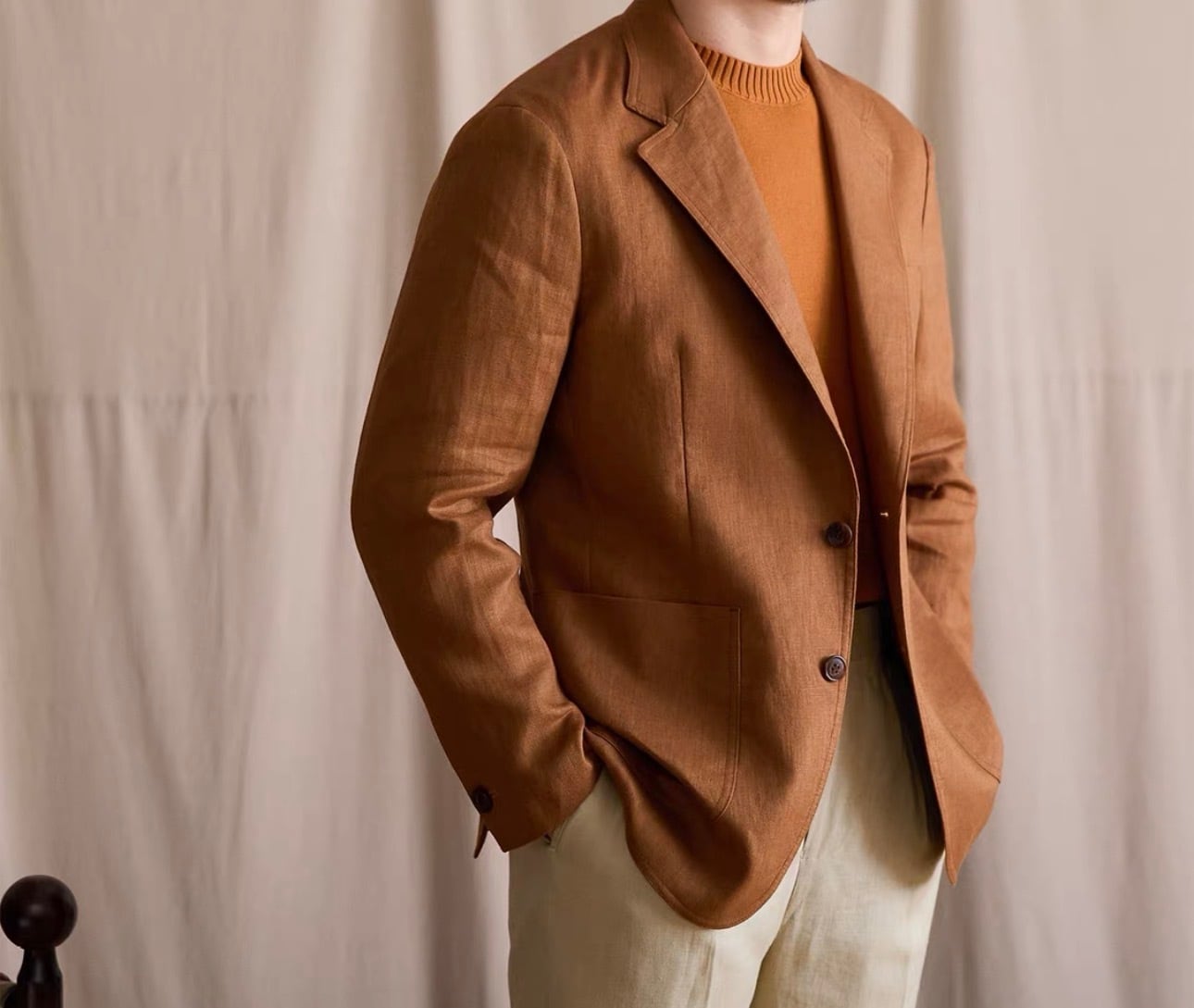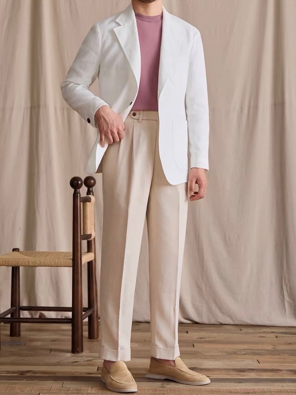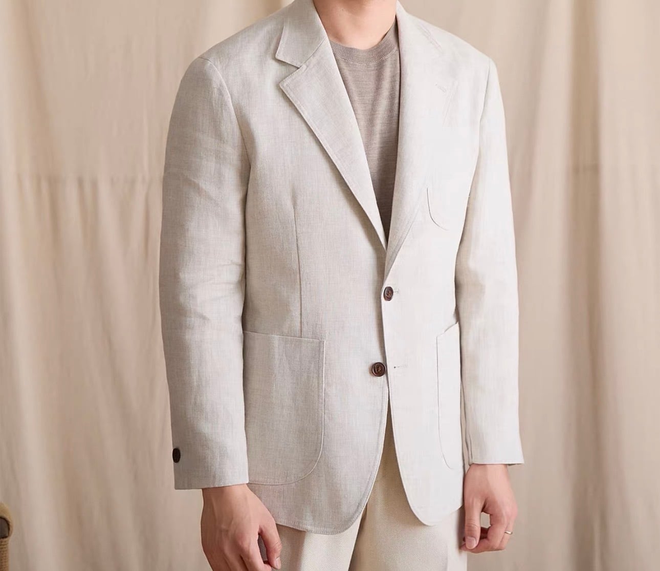 リネンアンコンジャケットは、シンプルでありながらスタイリッシュなシルエットが特徴です。着ることで自信を持った印象を演出し、多様なコーディネートにスムーズに合わせられます。これを羽織ることで、季節感のあるスタイルを思う存分楽しむことができるでしょう!