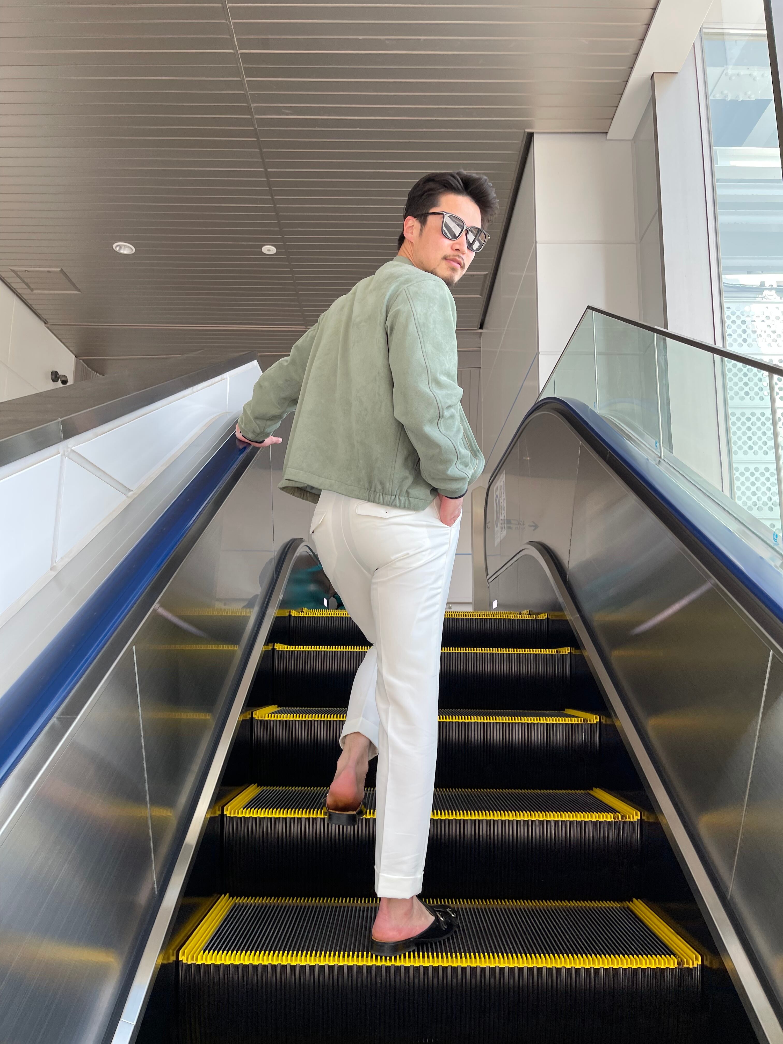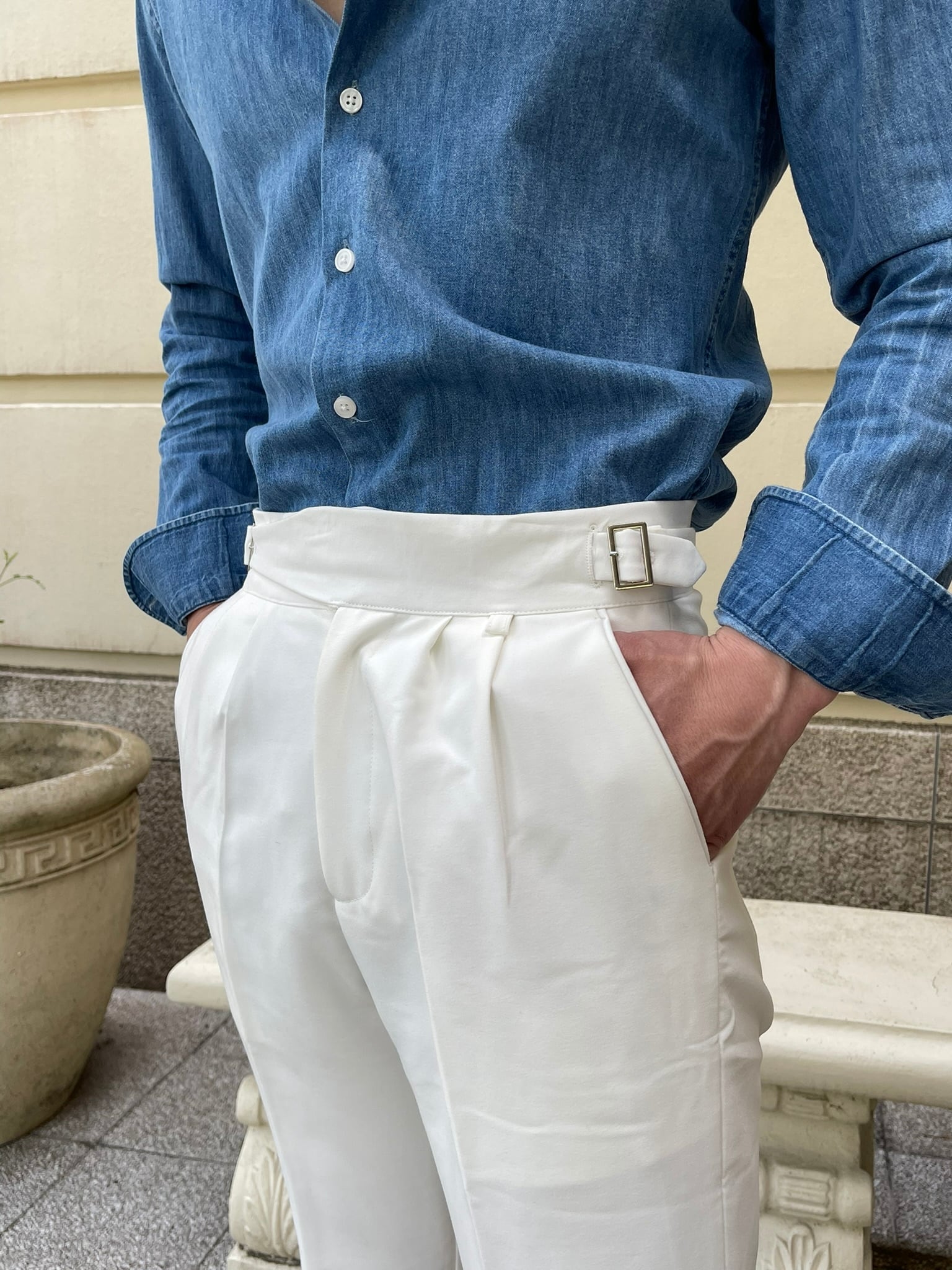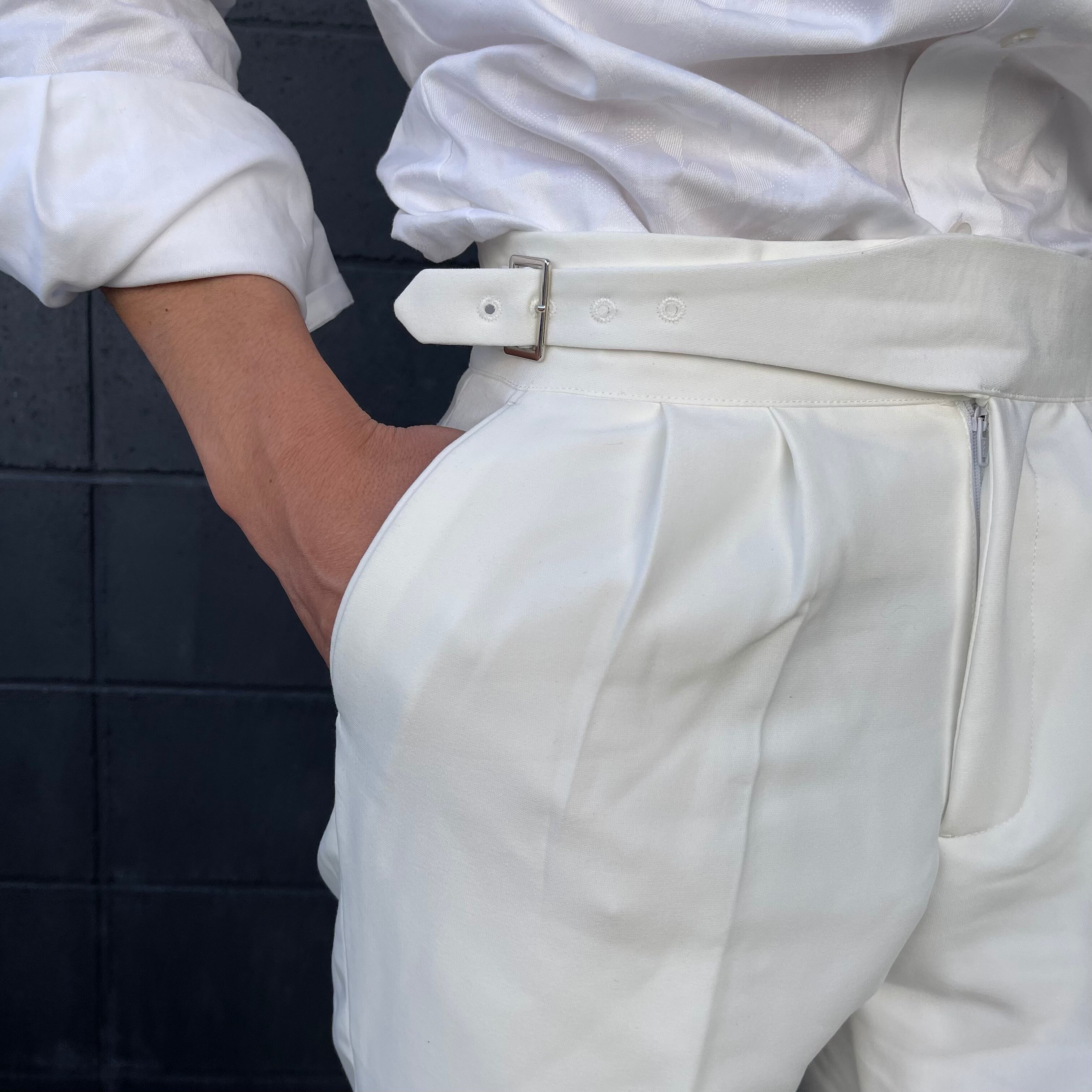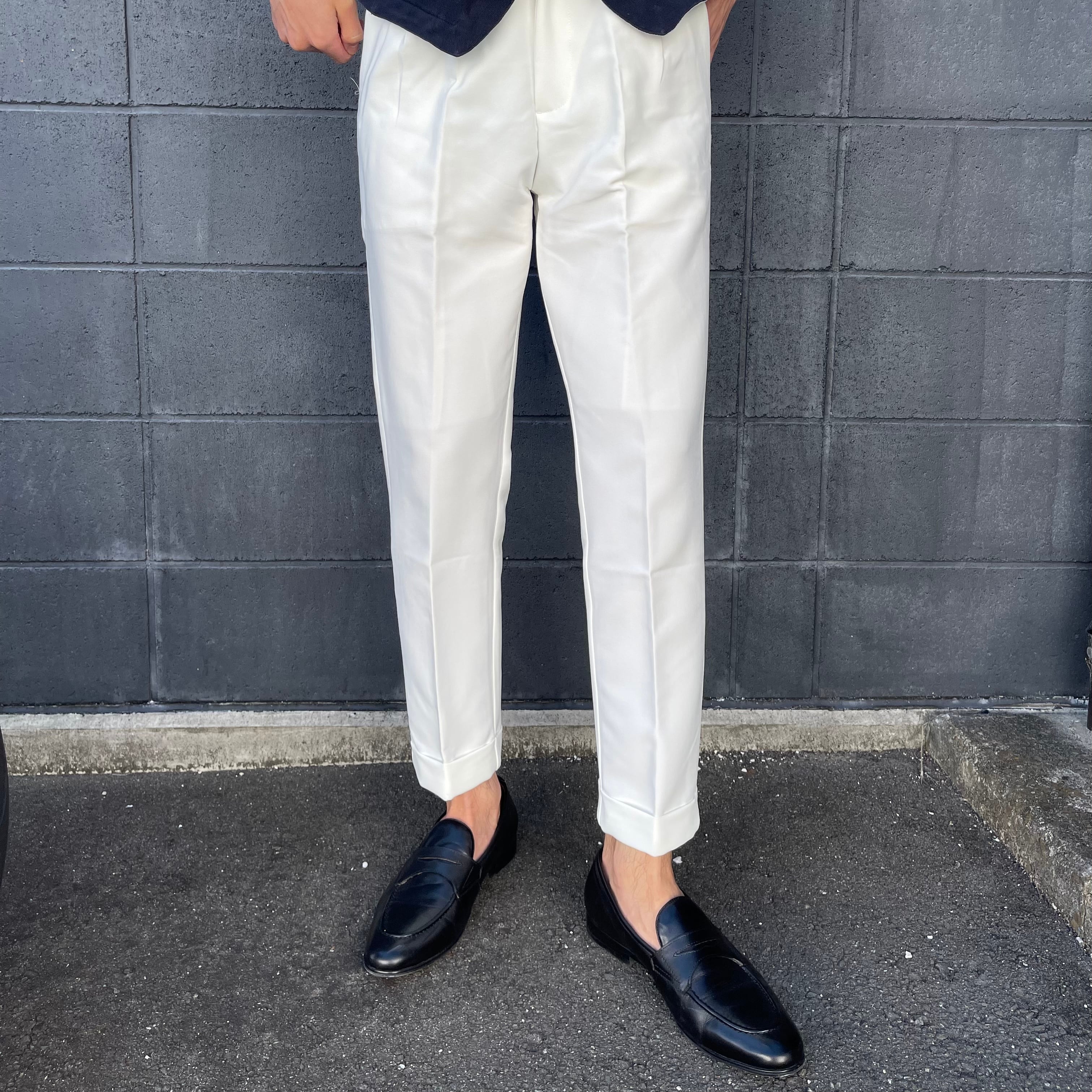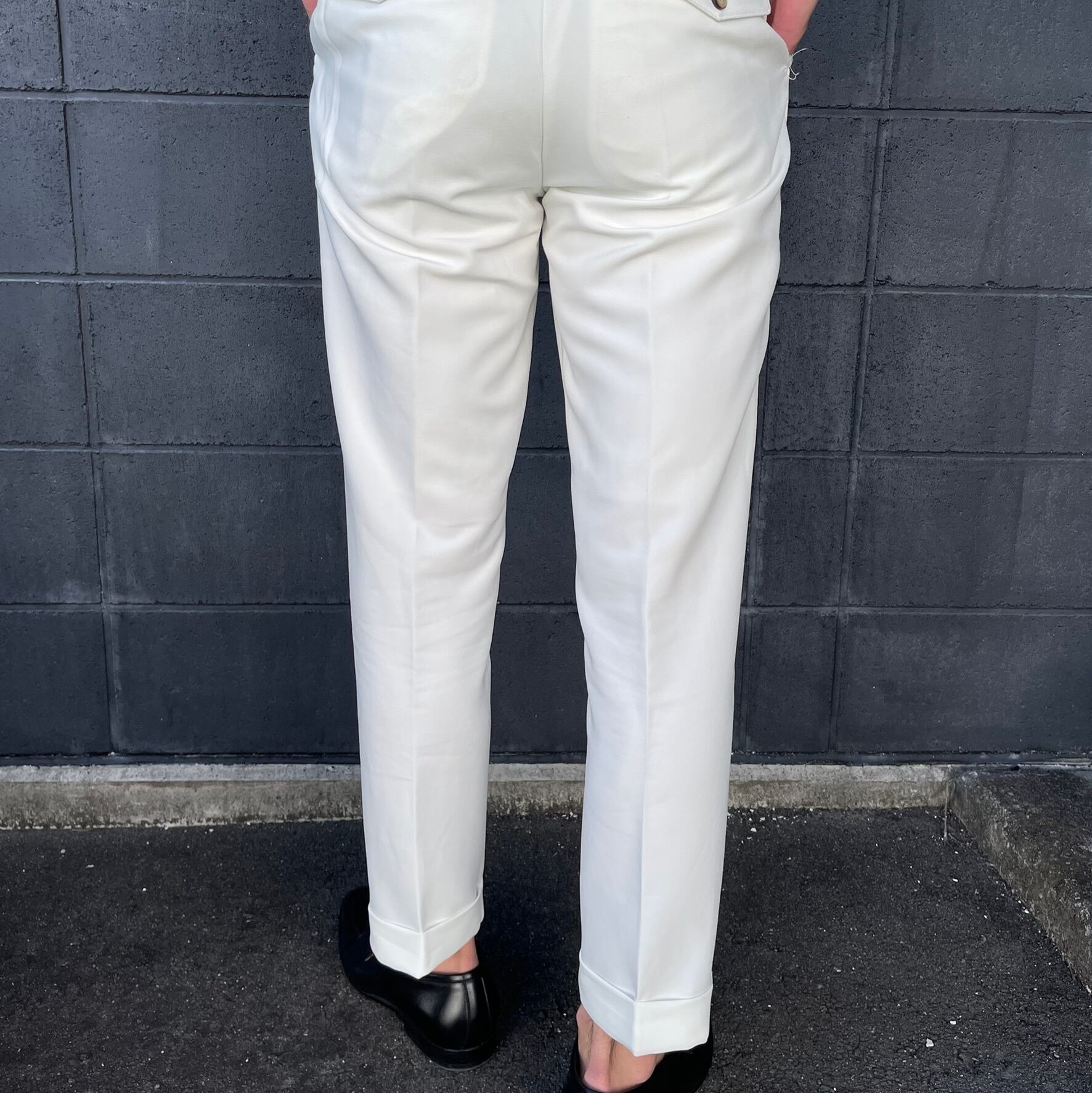 ウエスト部分にタックの入ったホワイトスラックスです!