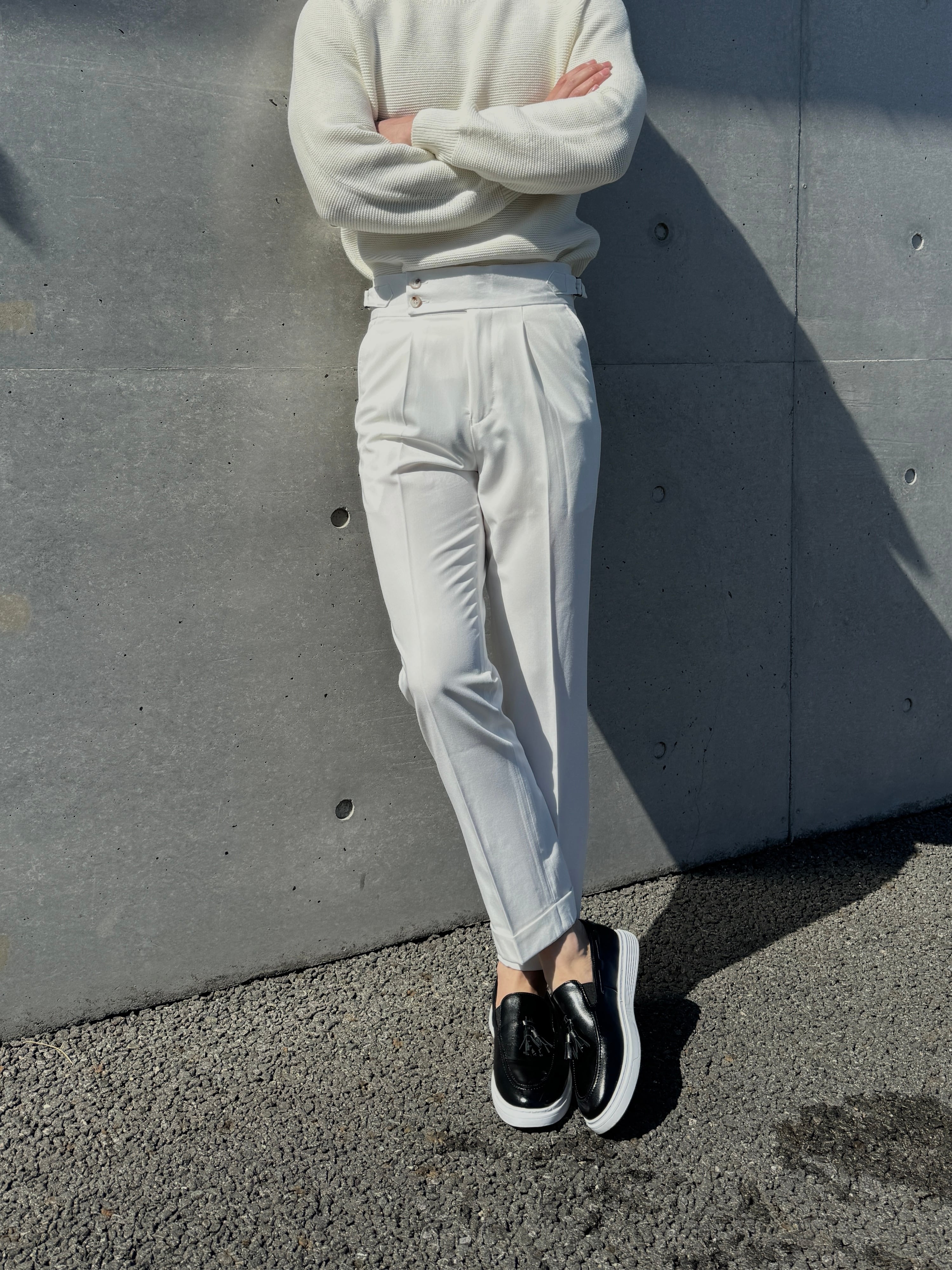 ベルトレススラックス【光沢有】【2本購入】 ¥20,000 カラー展開【ブラック、ホワイト、グレー、ベージュ、アイボリー】 超お得な2本セット購入! 通常2本で28000円→セット購入で20000円になります。 8000円もお得に。 ※備考欄に記入がない場合は同じカラー同じサイズを発送致します。 ※カラーサイズを選びましたら 【※備考欄にもう1着のサイズとカラーをご記入ください】 ※対象シーズン【オールシーズン】 生地に少し光沢を持たせてより高級感あるスラックスに!! ワンタック入りのシルエット抜群のベルトレススラックスです! 足長く見せたい、スタイル良く見せたい方にもおすすめの商品です! ※丈は人によって長いことがあるのでお直しは各自でお願い致します! 基本お直しした方が自分のサイズに合わせるので綺麗な履きこなしができるのでオススメします! イタリアファッションや綺麗めファッションには最適のパンツとなっております。 シルエットも良く、履き心地も良い商品です! カラー展開【ホワイト、ブラック、アイボリー、グレー、ベージュ】 モデル着用サイズ 177cm 67kg 【31】 SIZE 【29】 腰:73cm 丈:97 太腿:56cm 【30】 腰:77cm 丈:98 太腿:57cm 【31】 腰:80cm 丈:99 太腿:58cm 【32】 腰:83cm 丈:100cm 太腿:59cm 【33】 腰:87cm 丈:101cm 太腿:60cm 【34】 腰:90cm 丈:102cm 太腿:61cm 【36】 腰:93cm 丈:103cm 太腿:63cm ■ATTENTION 写真と実際の商品とは色合いなど多少異なる場合がございます。 画像はイメージとなっております。 商品到着まで約1週間〜2週間程度かかります。 納期や配送状況により発送日が前後する場合がございます。 お客様都合での返品・交換は受け付けておりません。 寸法や色の差は多少ございます。