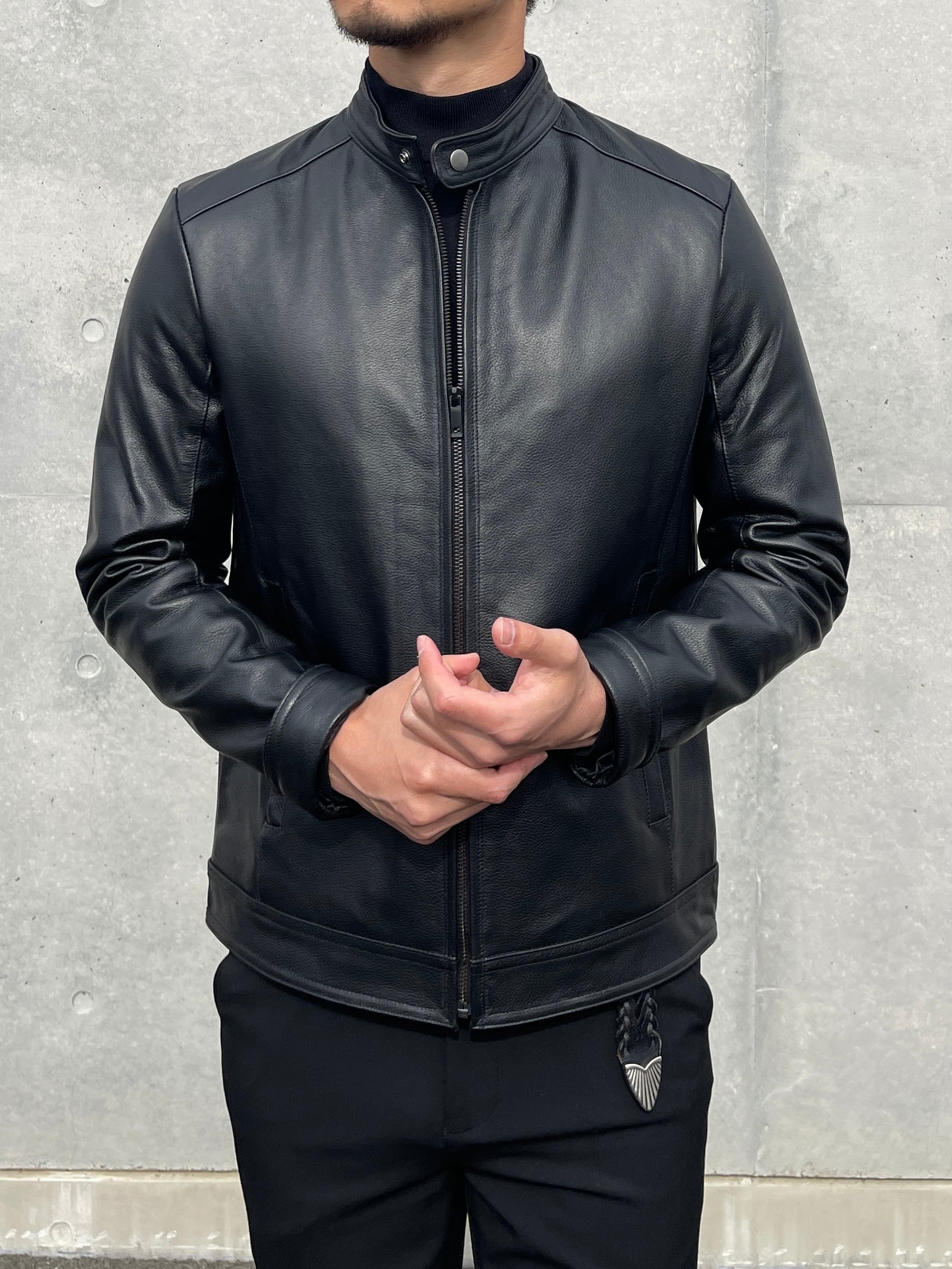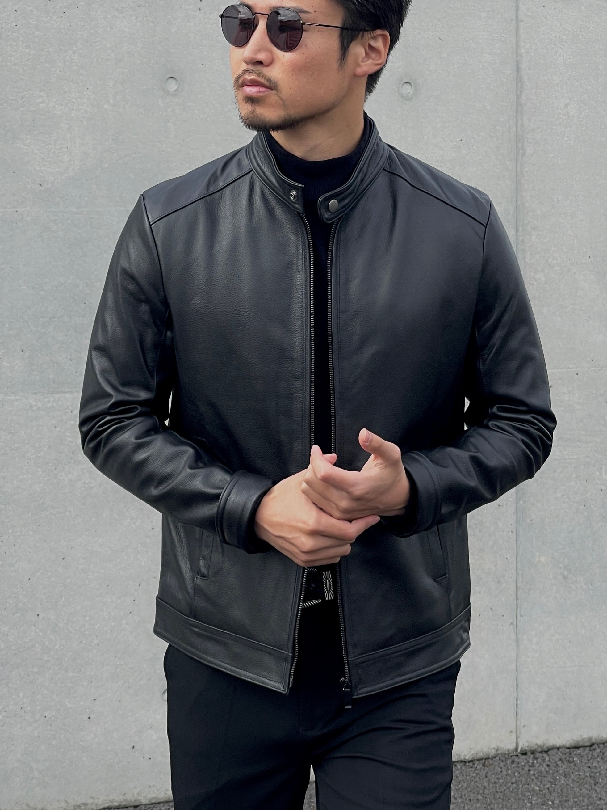 ※シンプルなデザインが魅力のカウレザーシングルライダース。牛革を使用したミニマムな一枚は、どんなコーディネートにもマッチし、シーズンを問わず活躍してくれます。さまざまなシーンで楽しめるライダースジャケットで、自分らしさを表現しましょう。