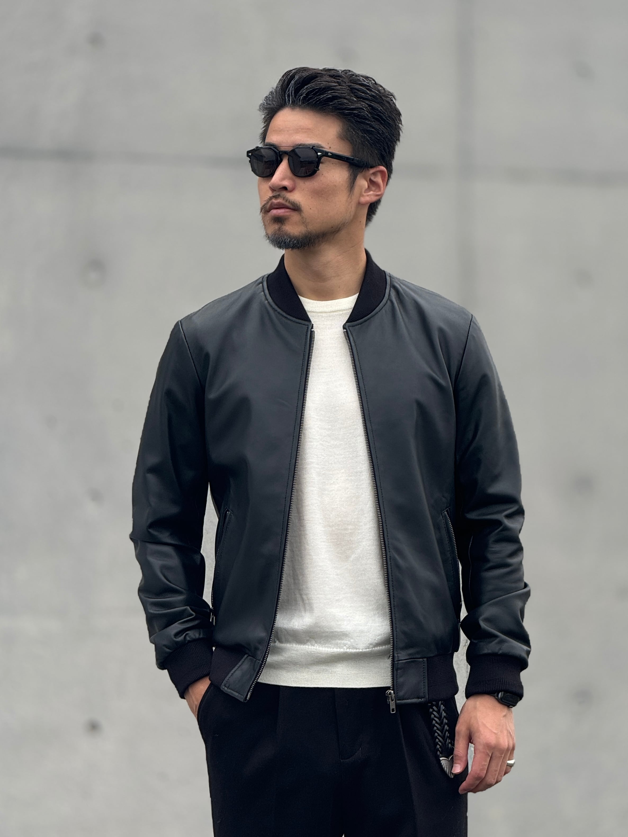 ※自由でクールなスタイルを演出できるレザーma-1ジャケット。シンプルなデザインでありながら、高級感溢れる上質なレザー素材を使用しています。ライダースジャケットと同じくらいのスタイリッシュさと、ma-1ジャケットならではのカジュアルな雰囲気が魅力です。男女問わず、幅広いコーディネートに対応できるアイテムです。さらに、長い年月を経ても型崩れせず、風合いが増していく特徴があります。