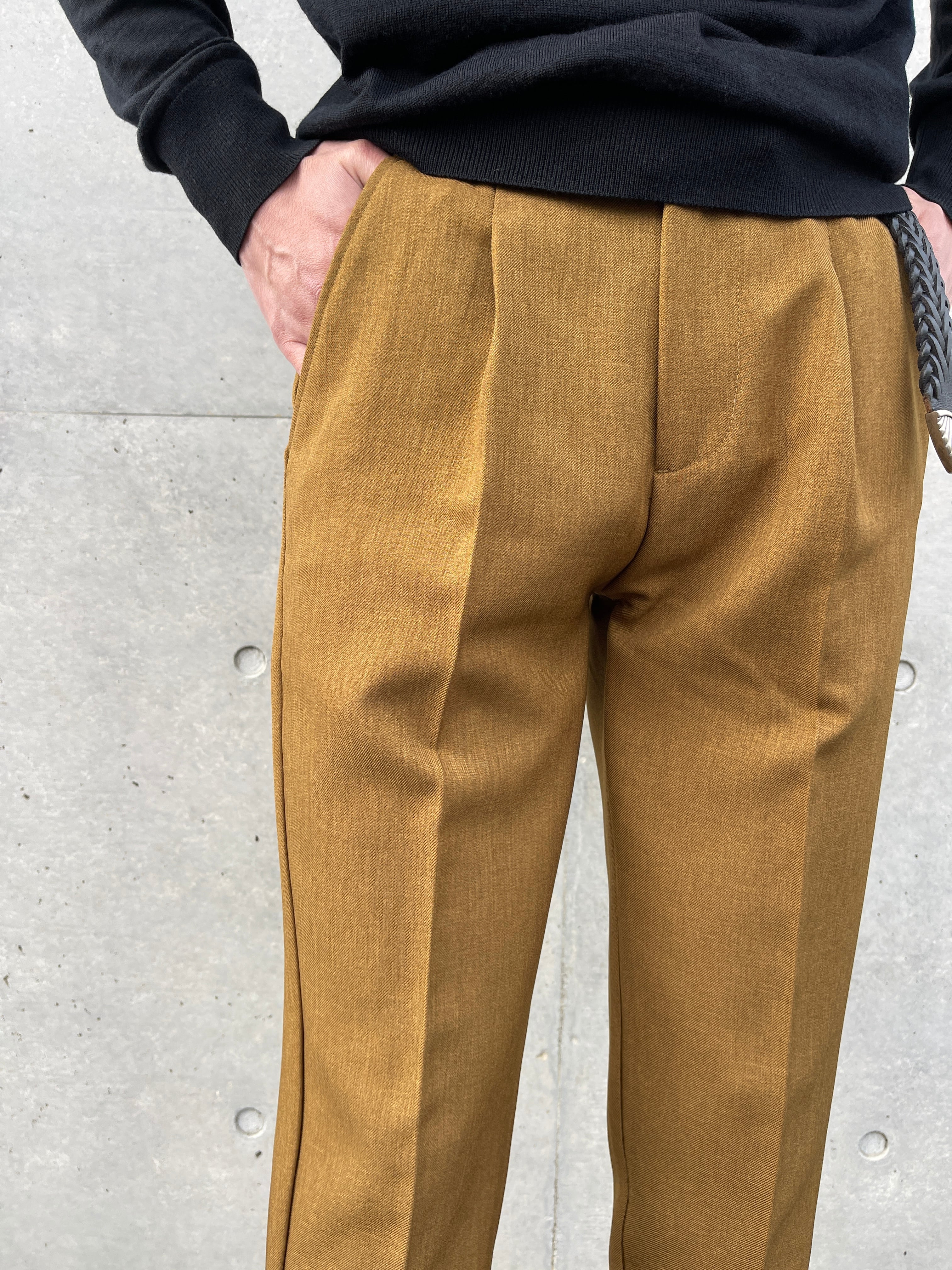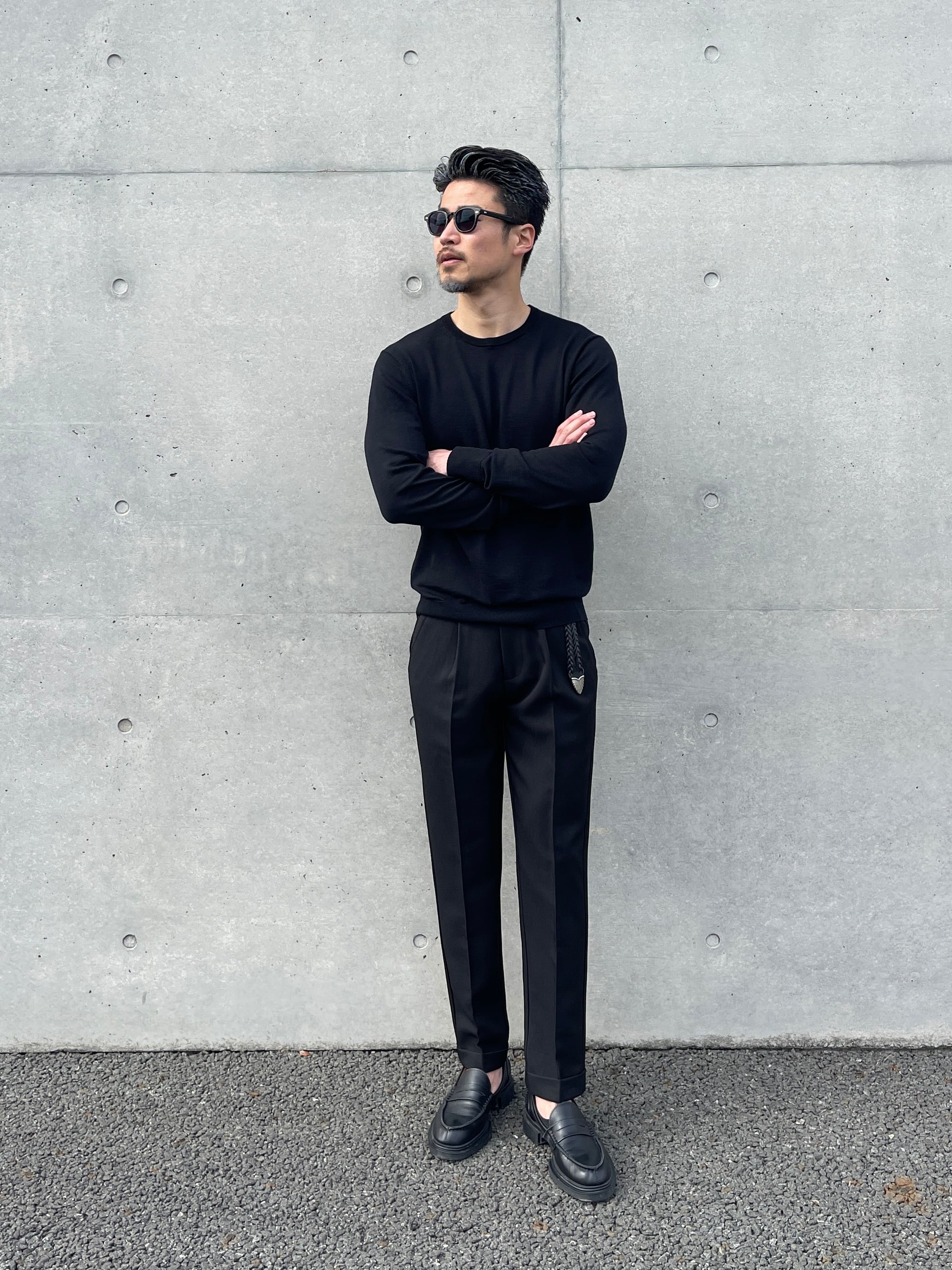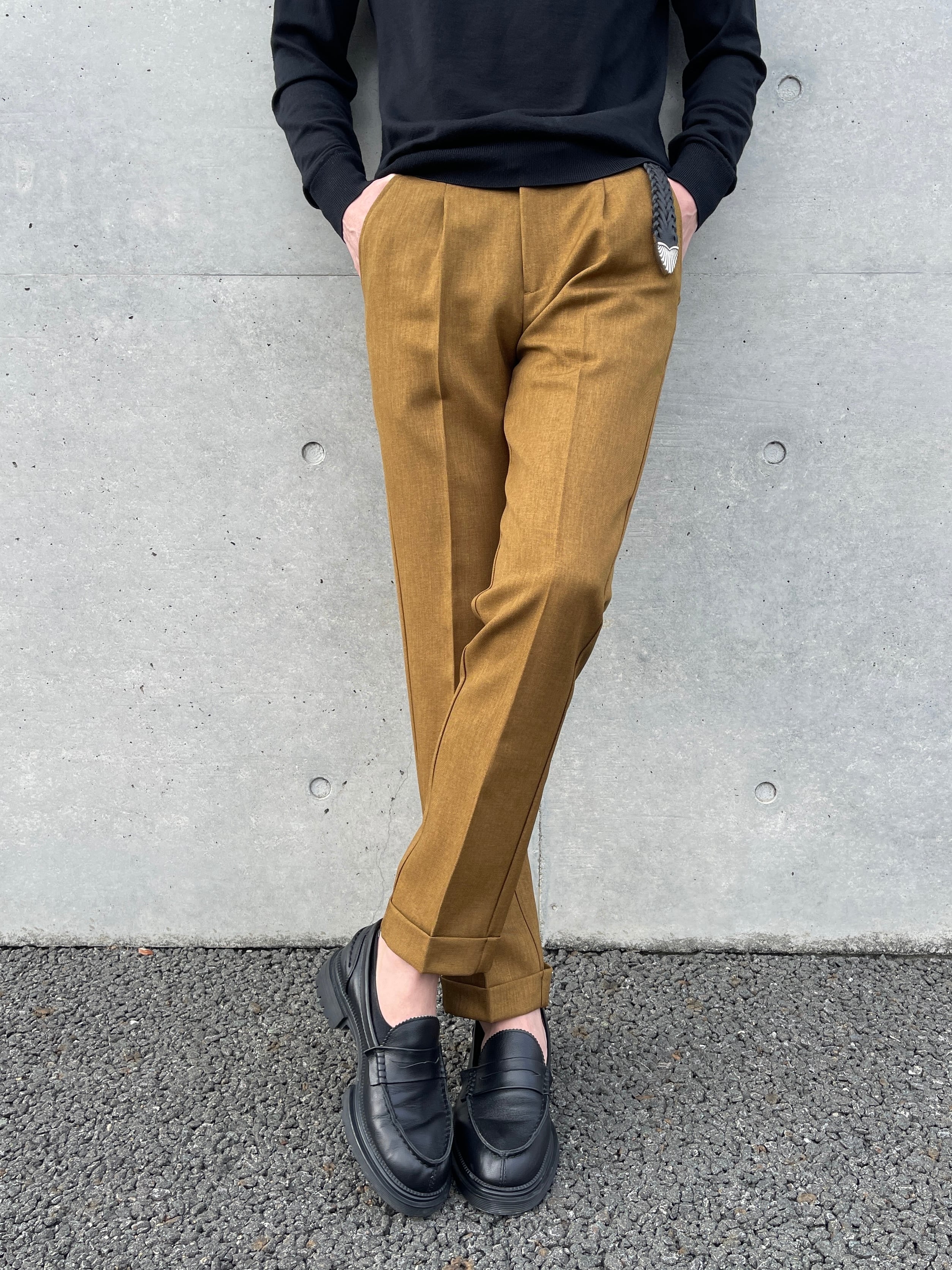 ※スマートで洗練された印象を叶えるワンタック入りスラックス。ウエスト周りはすっきりとしたシルエットで、足首から裾にかけて程よくテーパードしているので、スタイリッシュな印象を与えます。ビジネスシーンからカジュアルまで幅広く活躍する一本です。