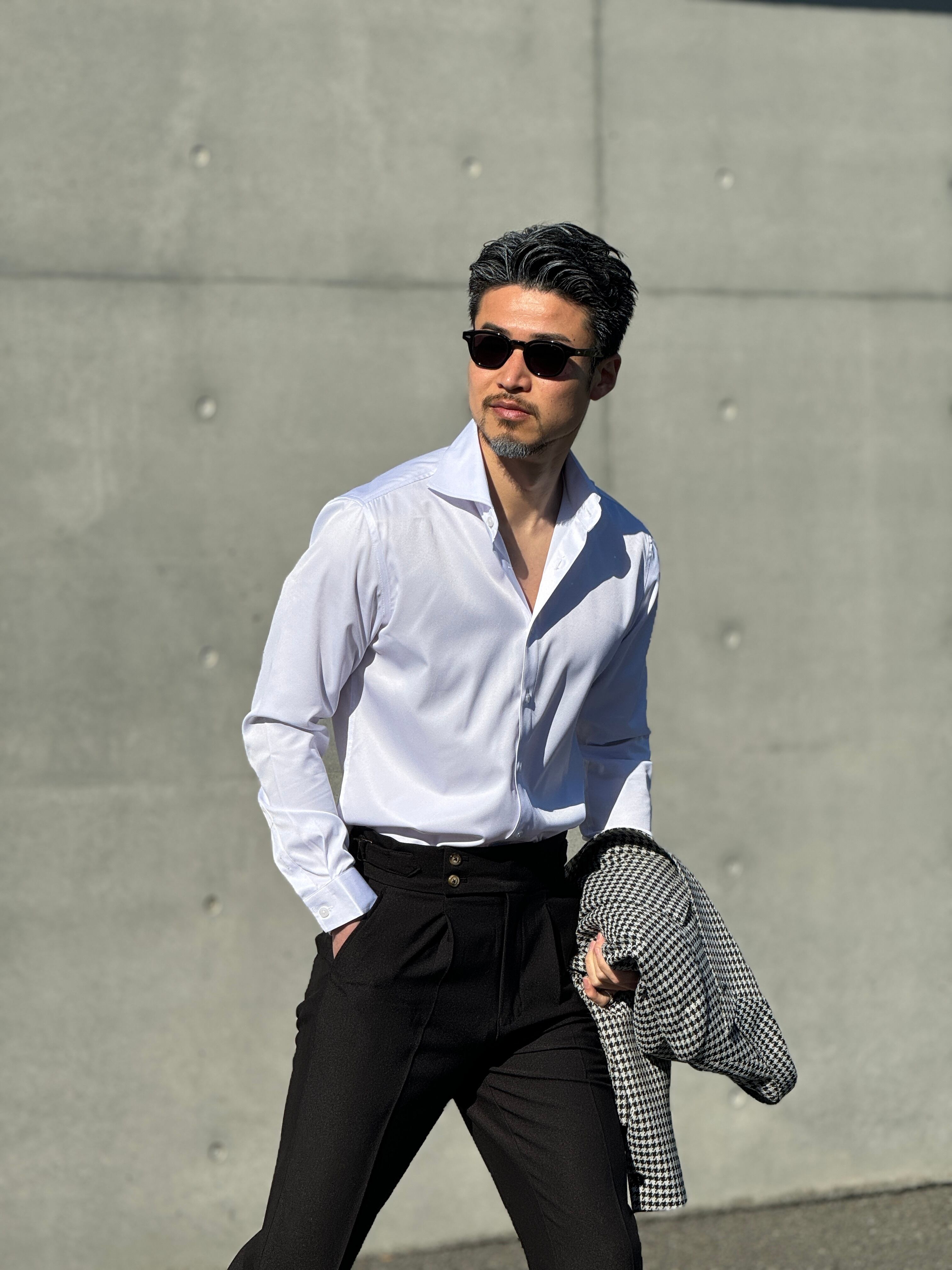 ※機能性とスタイリッシュさを兼ね備えたホリゾンタルカジュアルシャツ。ストレッチ素材が体にフィットし、動きやすさを追及したデザインです。カジュアルながらも、洗練されたホリゾンタルラインが大人の魅力を引き立てます。仕事からデートまで幅広いシーンで活躍する一枚です。