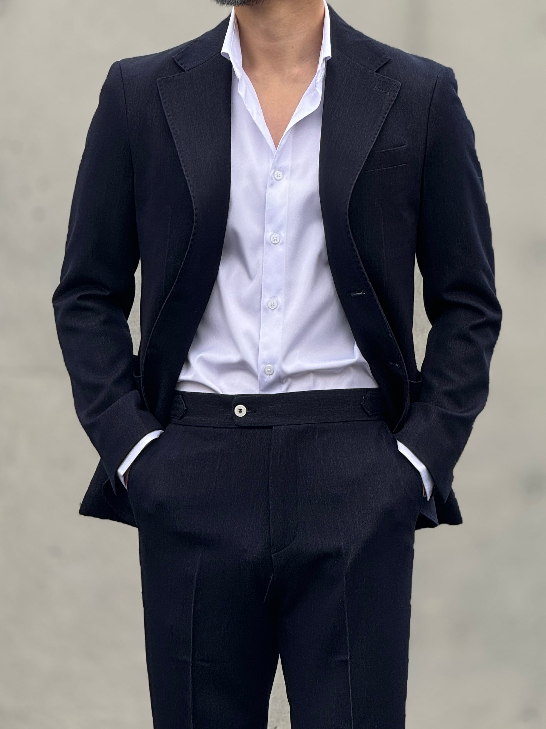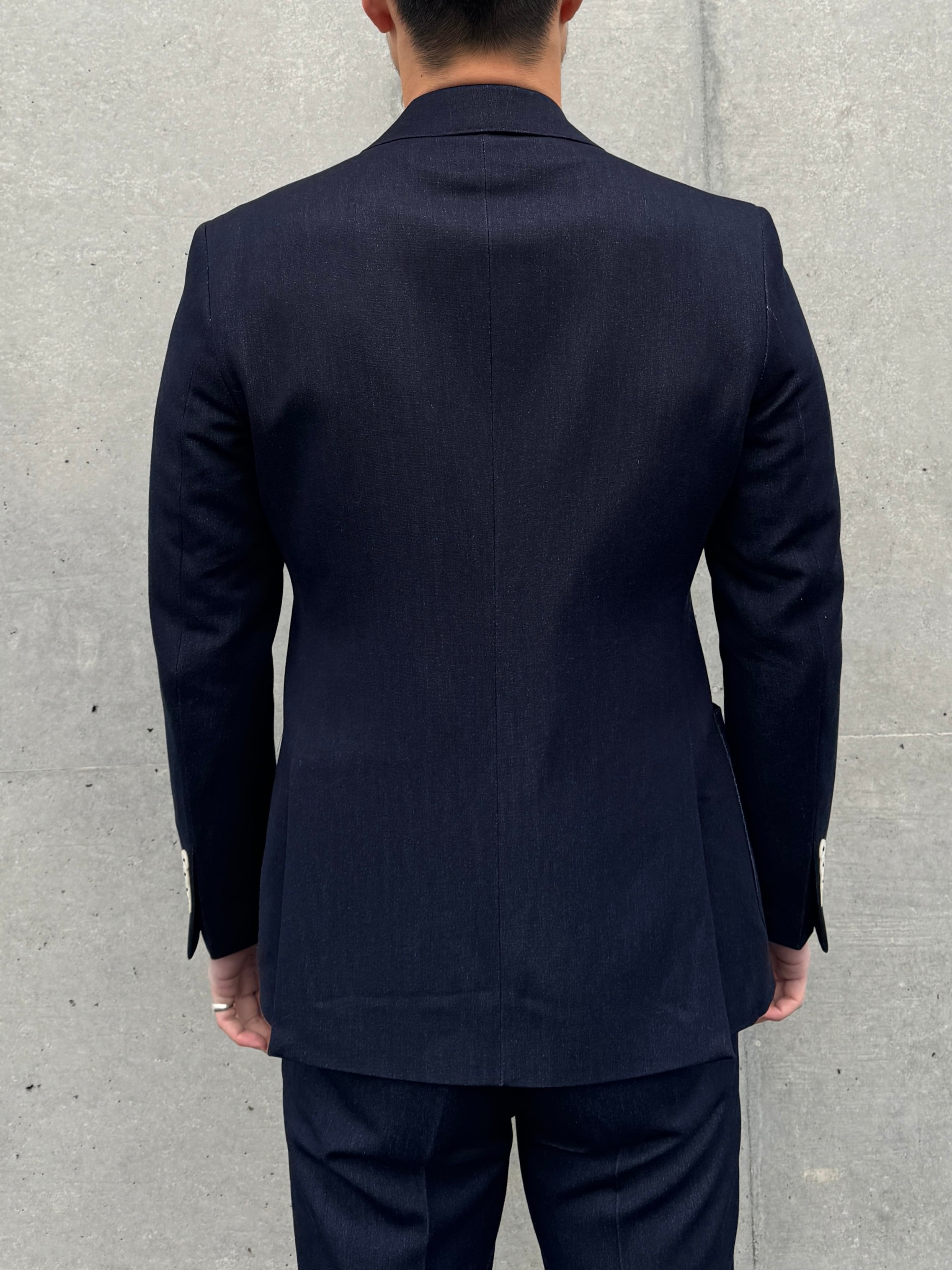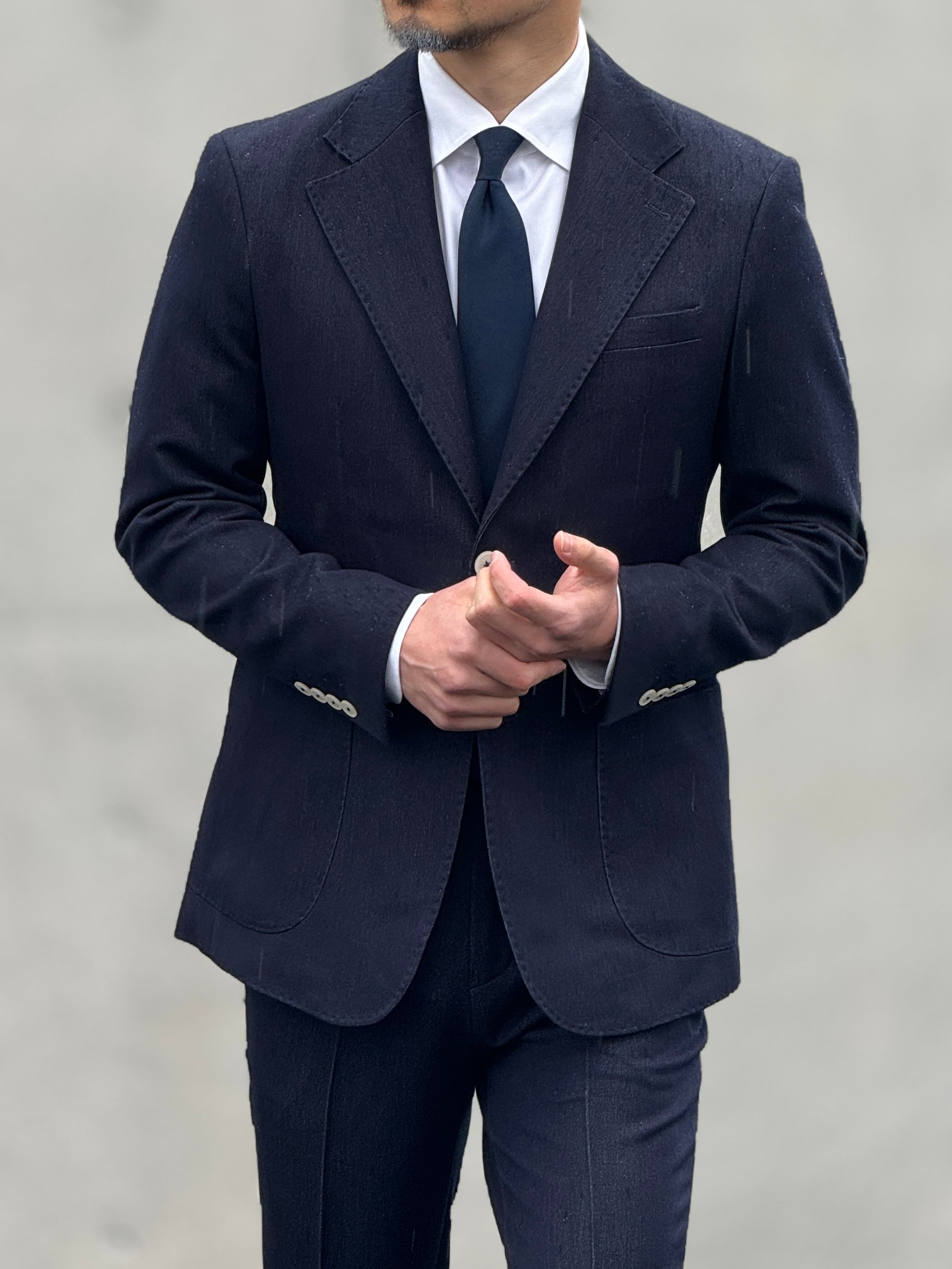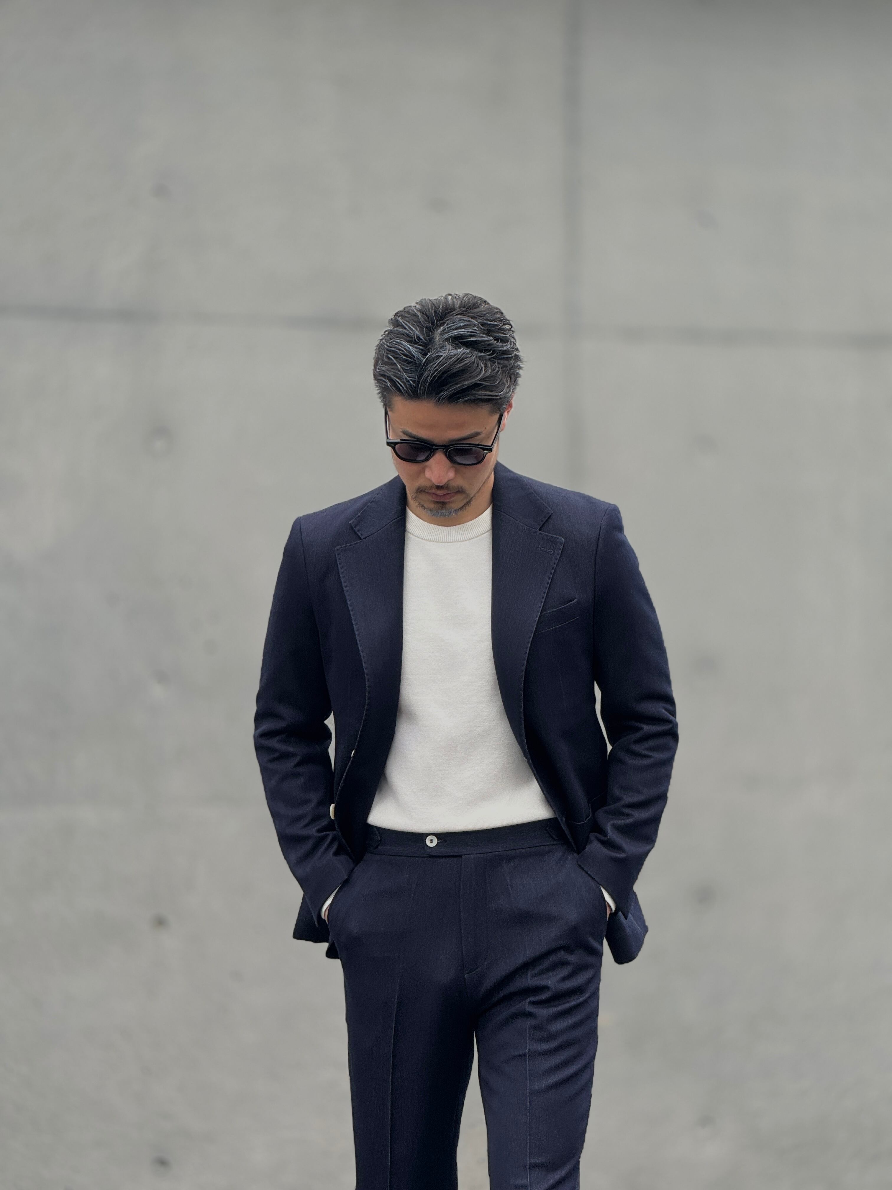※洗いざらしの風合いが魅力のデニムライクジャケット。デニムライク素材ならではのカジュアルさを楽しめる一着です。カジュアルなスタイリングに取り入れるもよし、シャツにネクタイとの相性も抜群。シンプルなデザインなので、様々なコーディネートに合わせやすく、着こなしの幅が広がります。