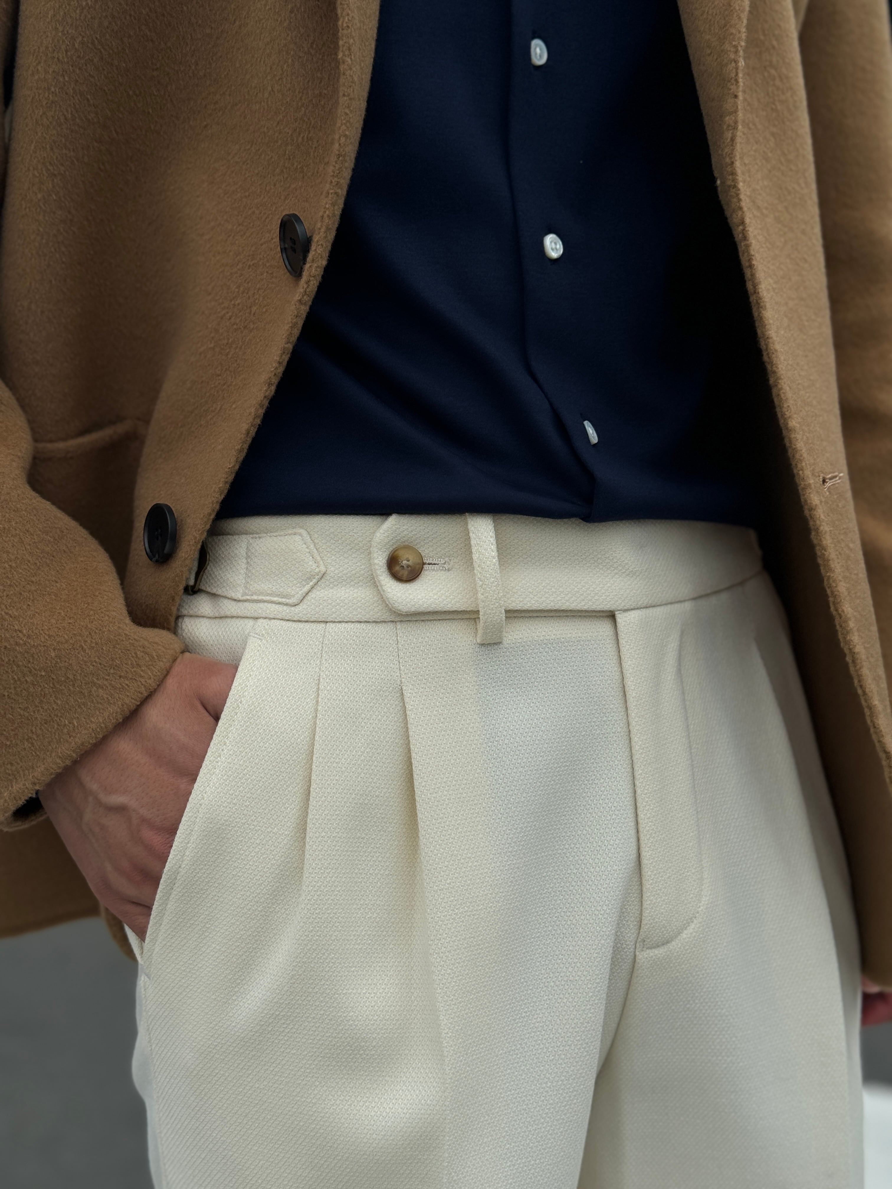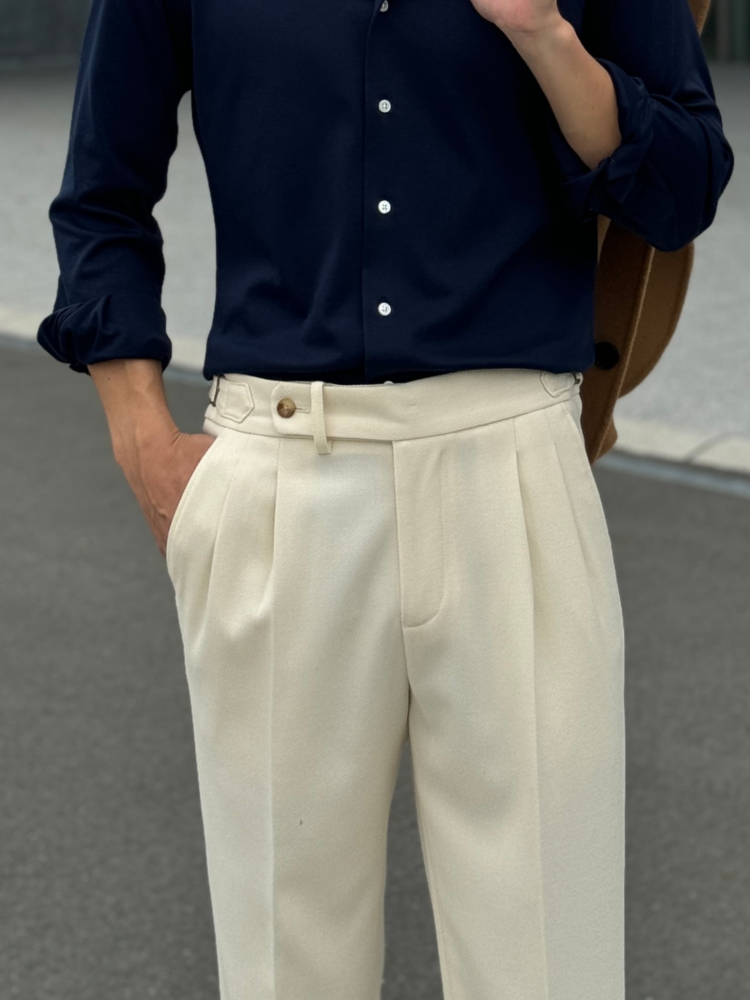 さらに、ベルト不要でスッキリとしたシルエットを作り出してくれるので、コーディネートの幅も広がります。