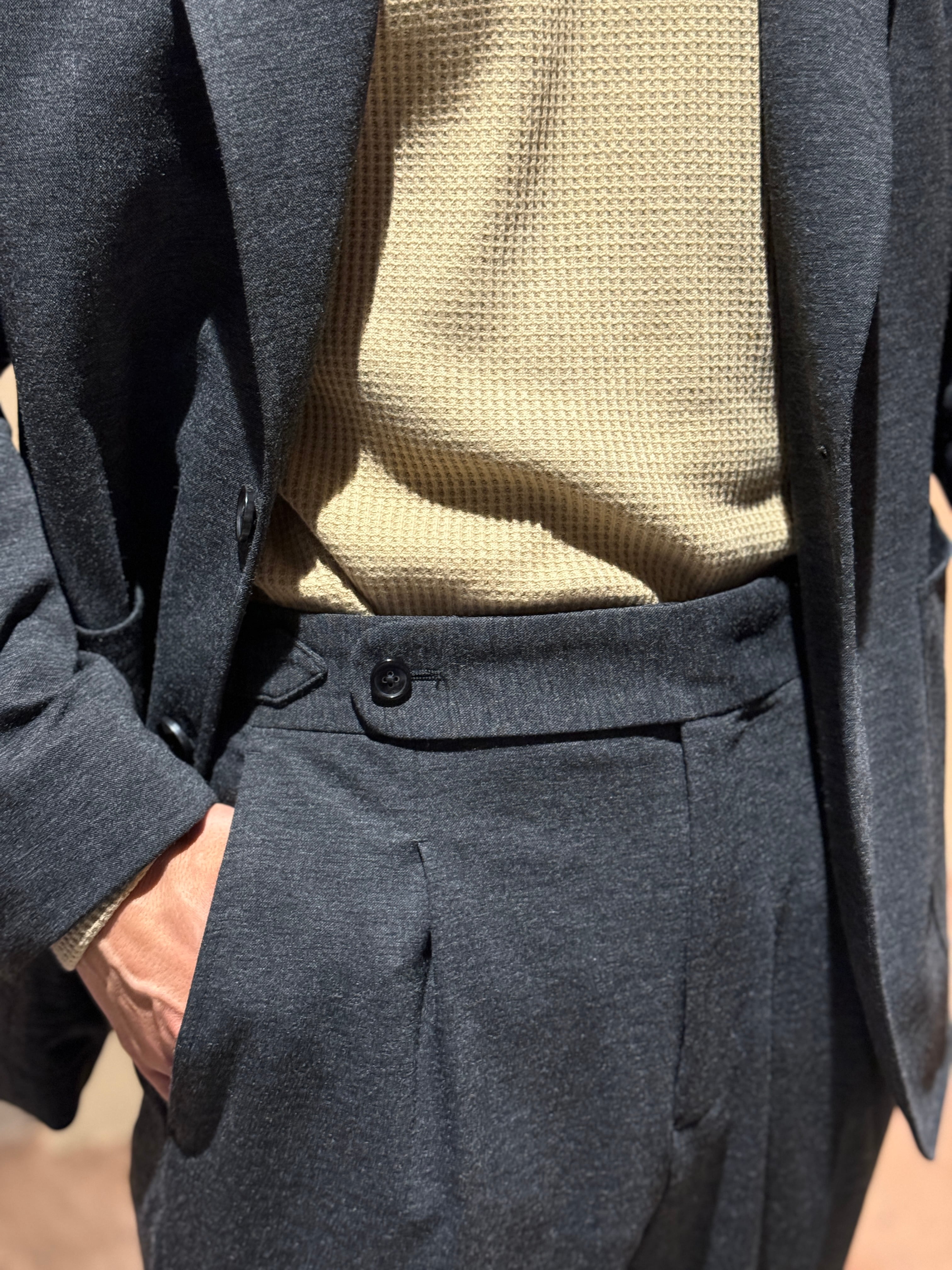 カジュアル仕立て軽い作りなので上下単品でも使いやすいデザインで、着回し力抜群のアイテムです