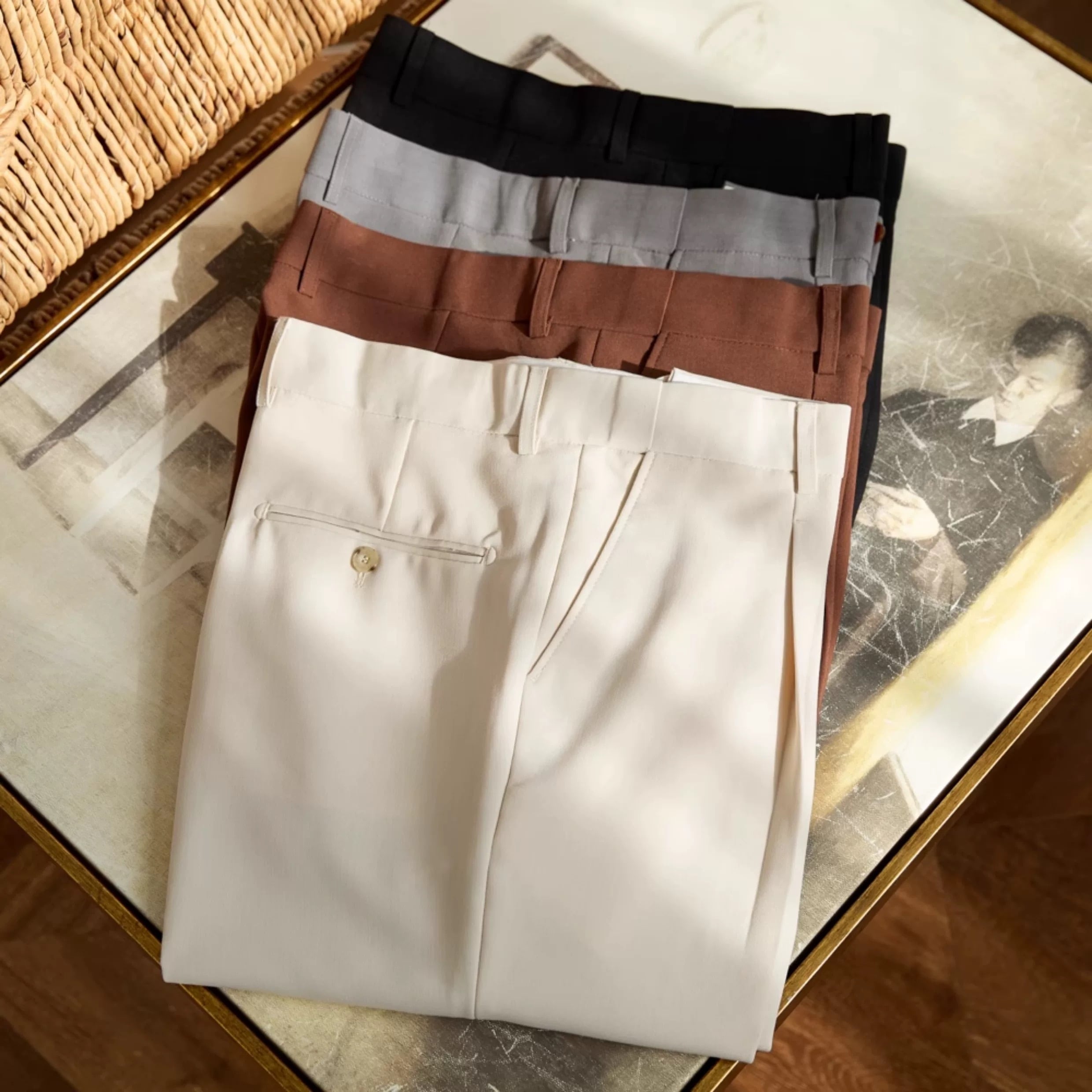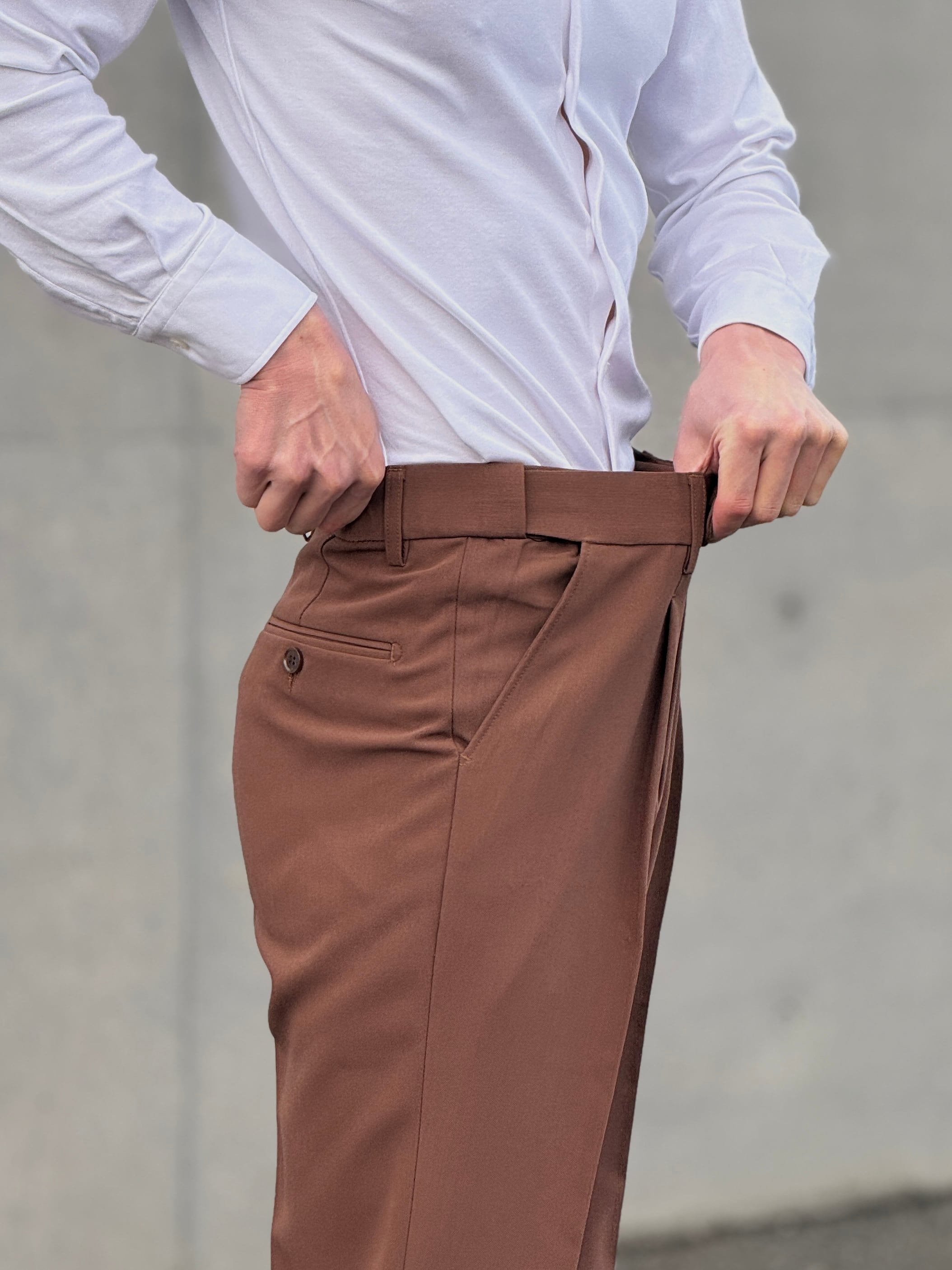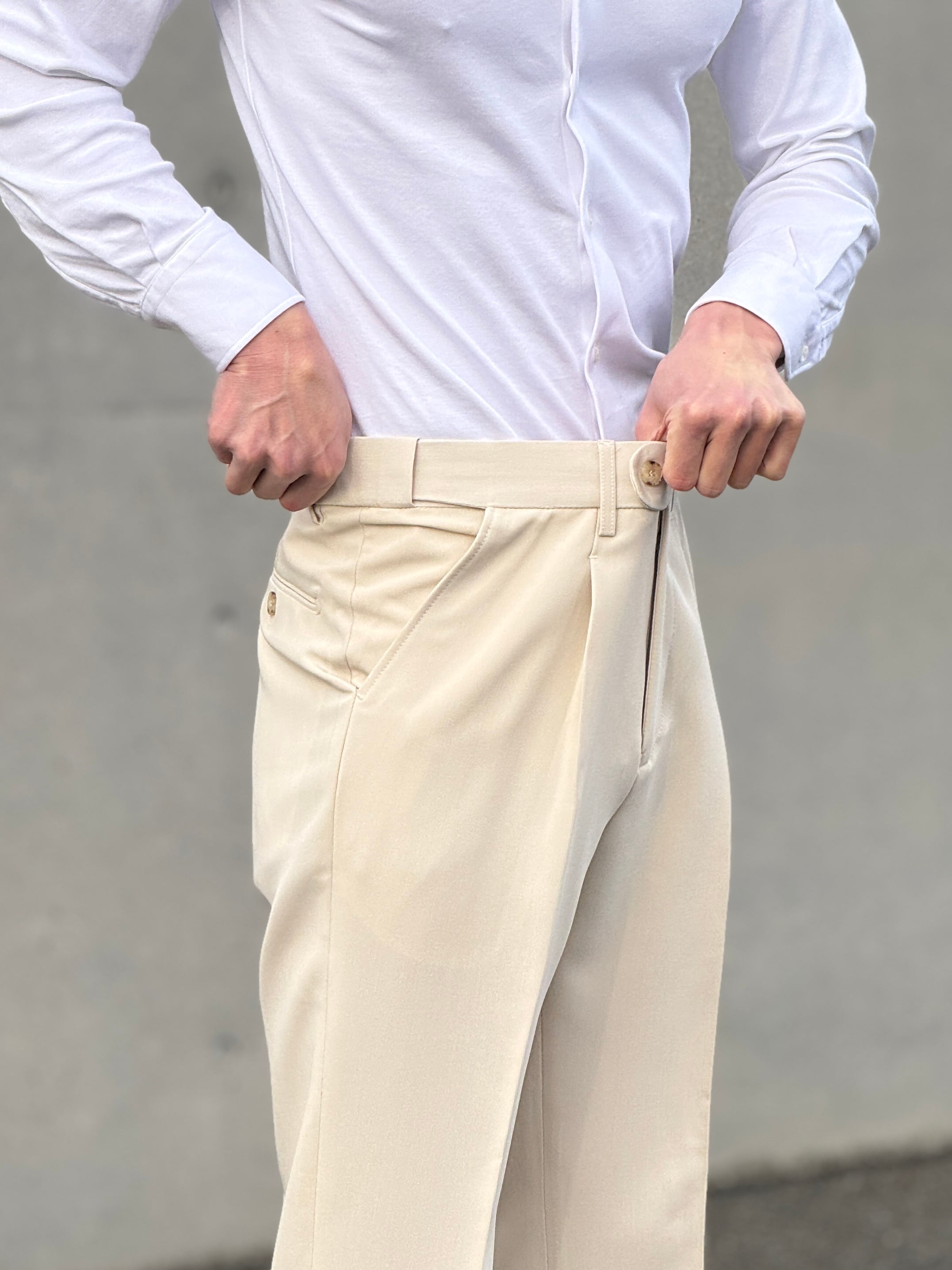 このスラックスは、ビジネスシーンからカジュアルな日常まで幅広く対応可能で、清潔感のある印象を与えてくれます。フレッシュな春夏のスタイルにぴったりで、どんなトップスとも相性抜群です。快適さとおしゃれを両立させたこのスラックスをぜひお試しください!
