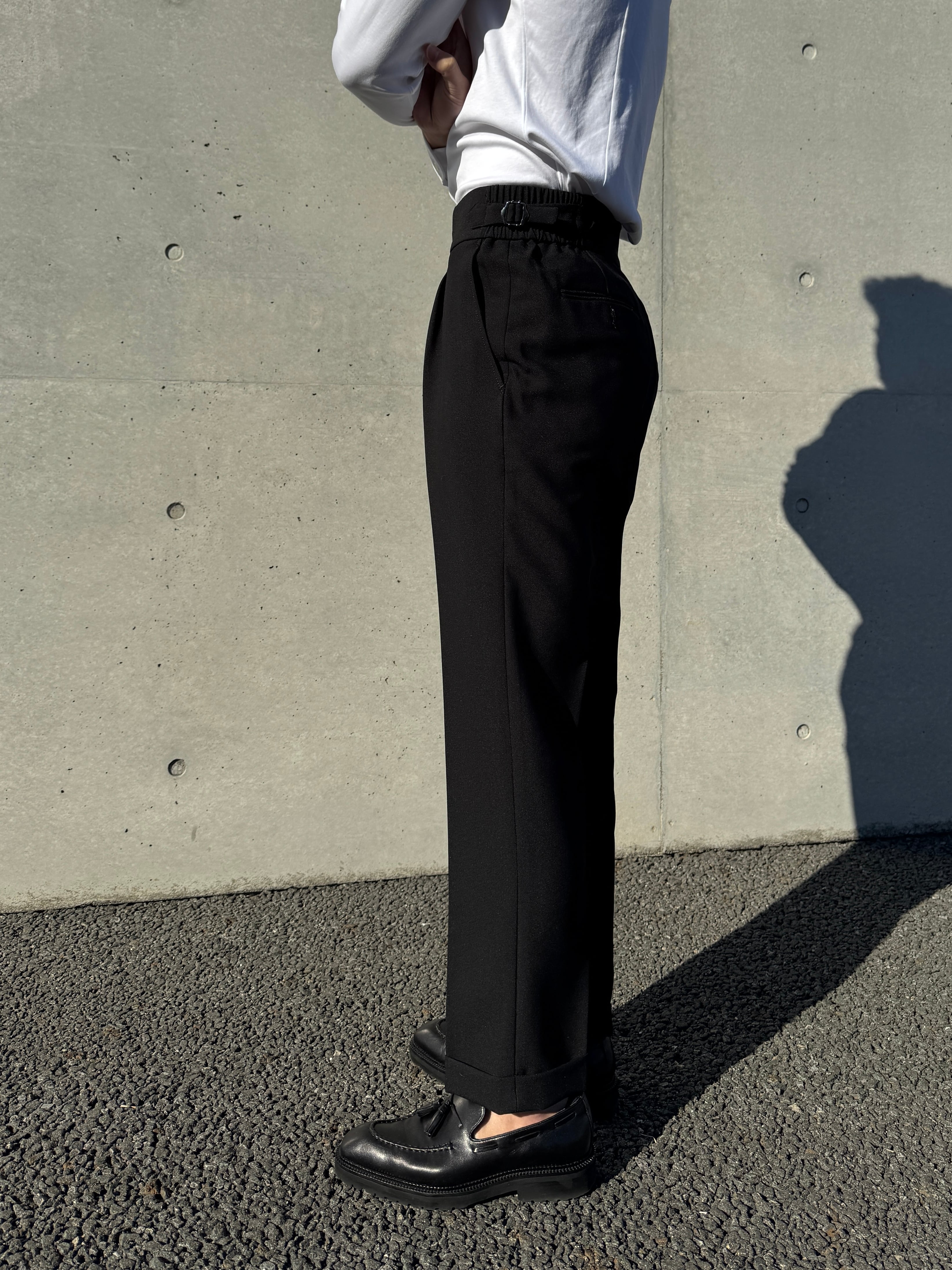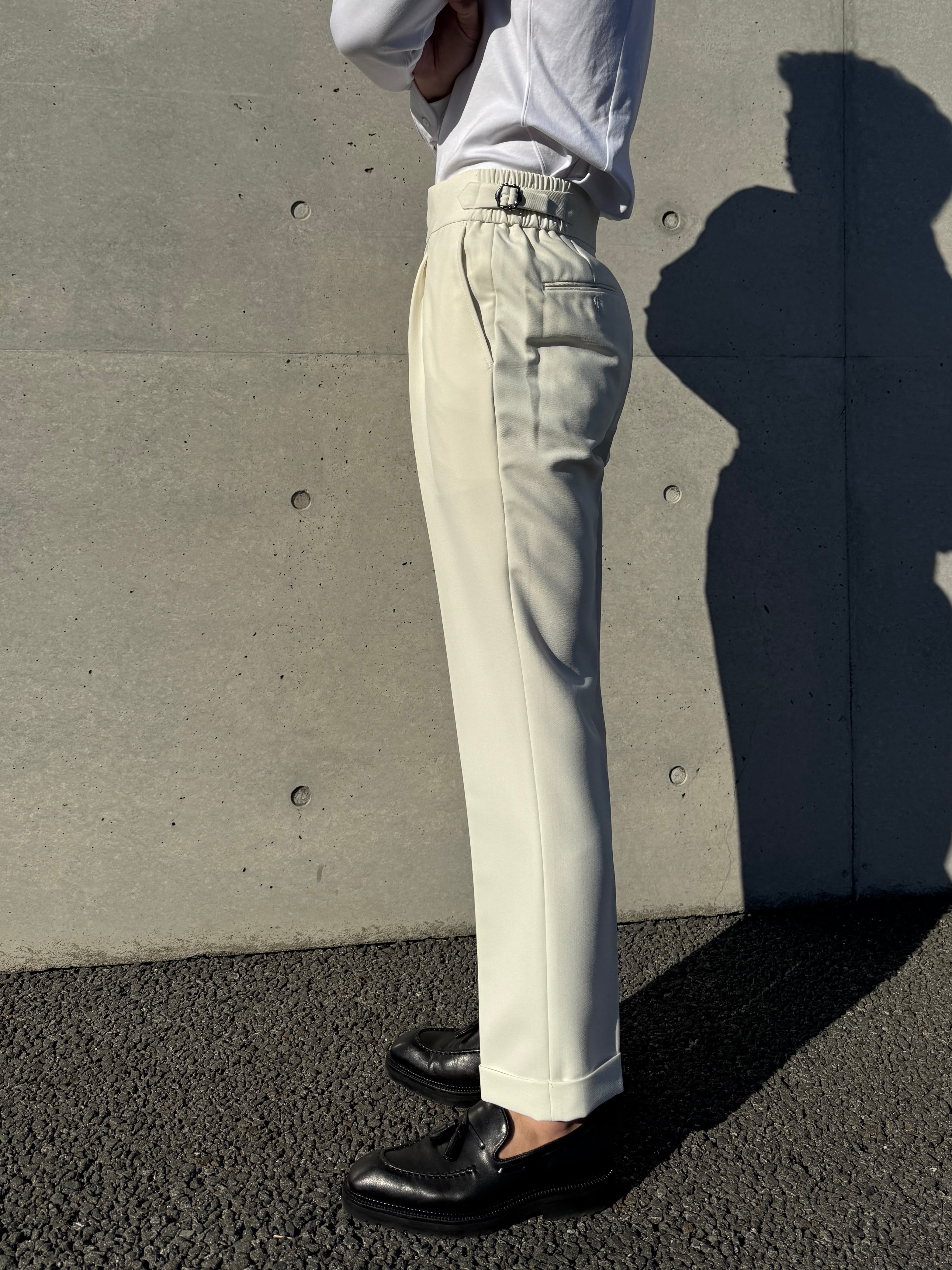 ※新たに登場したサイドシャーリングベルトレススラックス【ハイウエスト】